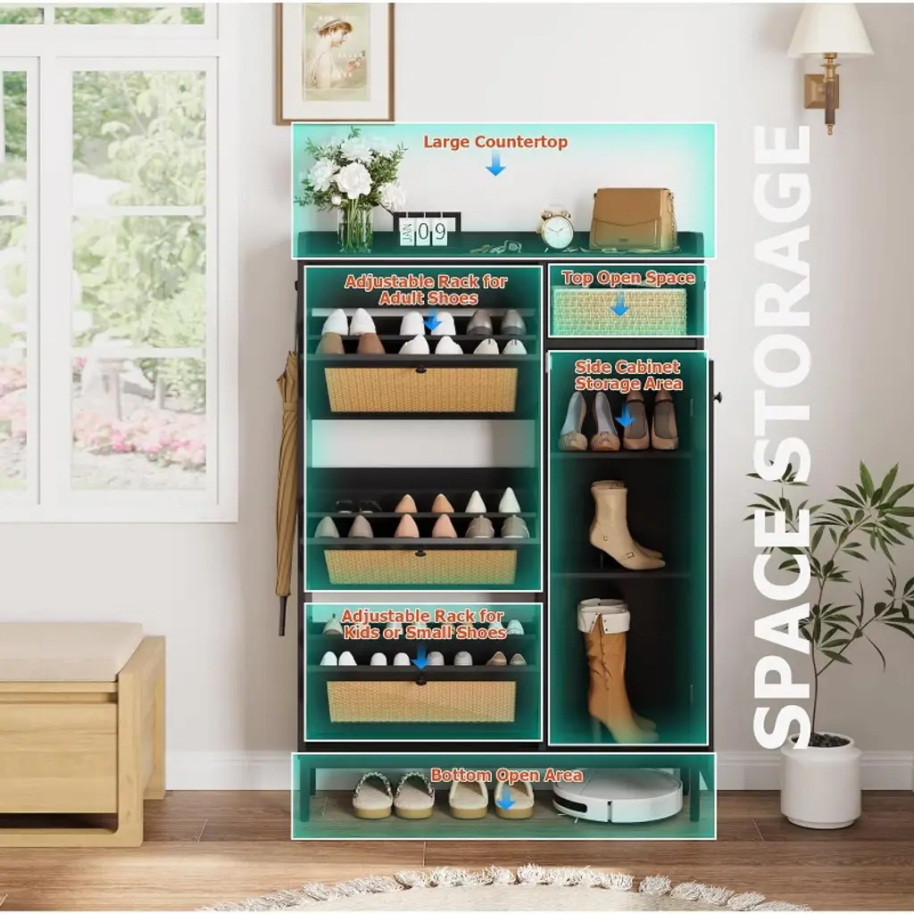 Garvee Shoe Cabinet With 3 Flip Drawers, 4-tier Rattan Shoe Storage Cabinet, Freestanding Shoe Organizer With Adjustable Shelves For Entryway