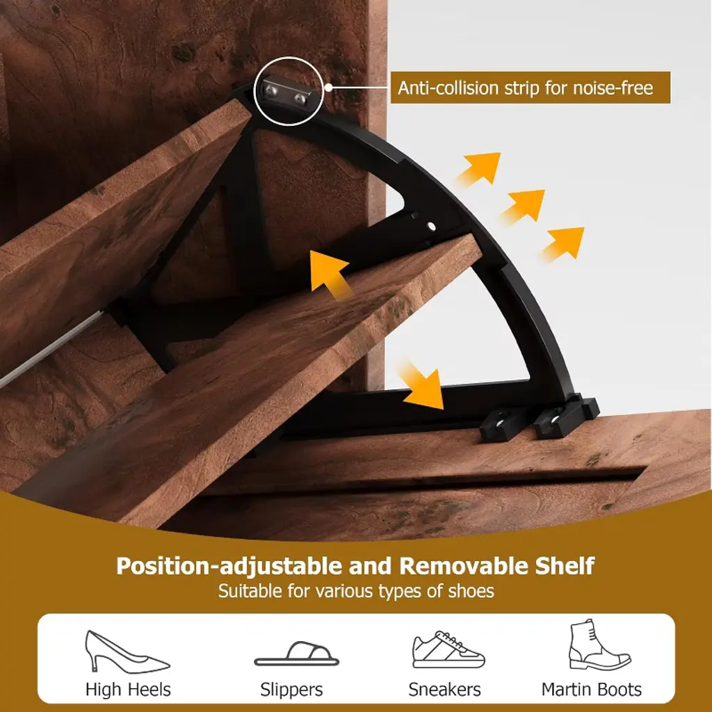 Garvee Shoe Cabinet With 3 Flip Drawers, 4-tier Rattan Shoe Storage Cabinet, Freestanding Shoe Organizer With Adjustable Shelves For Entryway