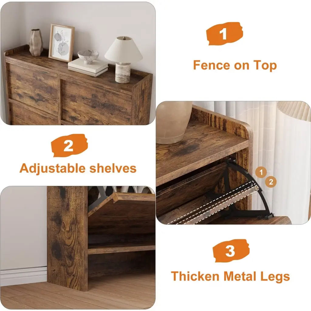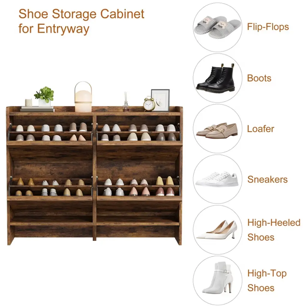 Gustowave Shoe Cabinet With 4 Flip Drawers, Wooden Shoe Organizer Cabinet With Adjustable Shelf,shoe Storage ,Hidden Shoe Cabinet For Hallway,entryway