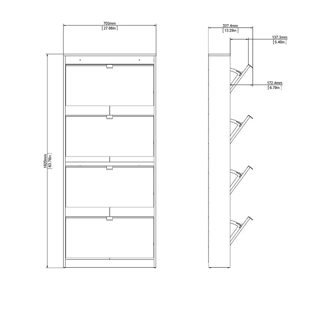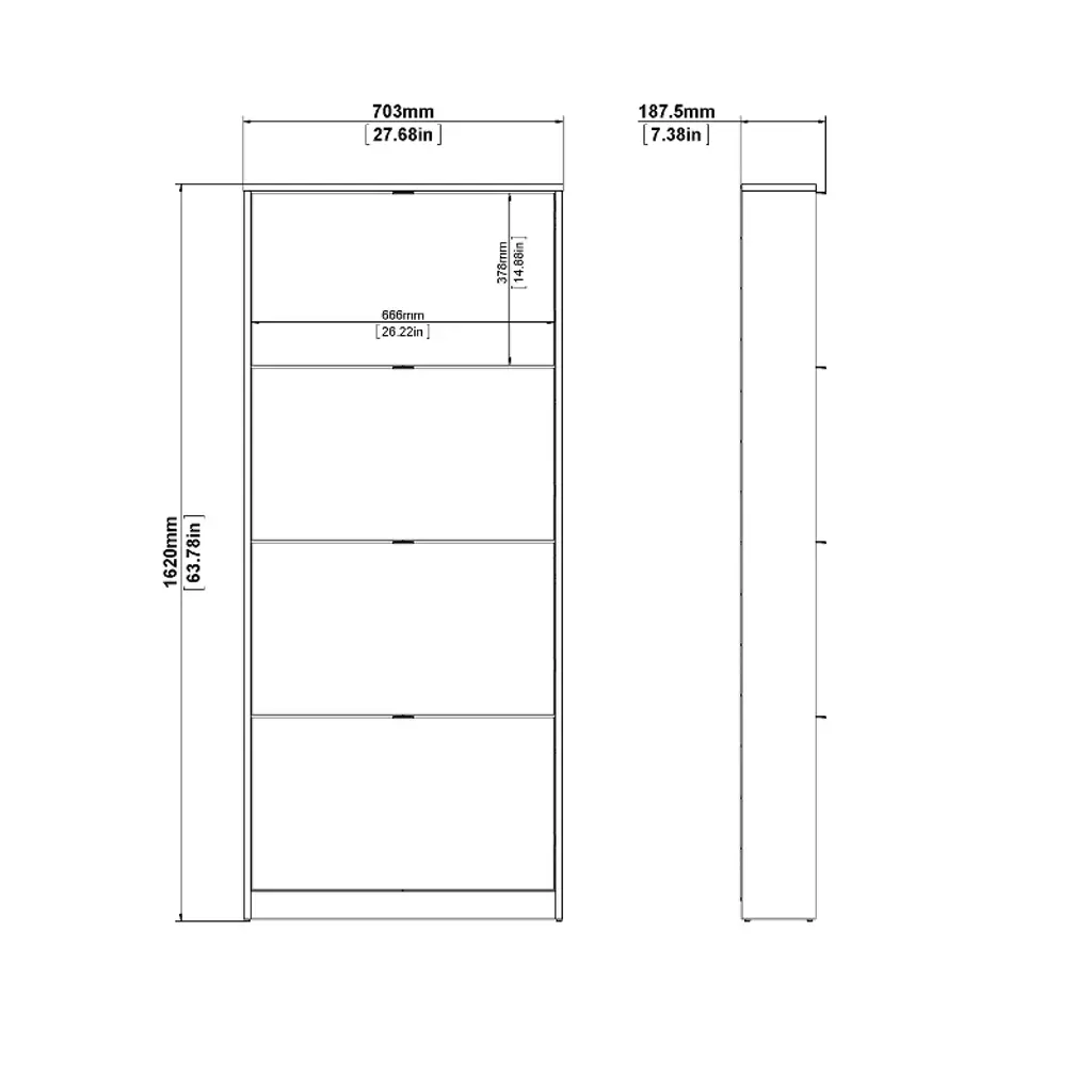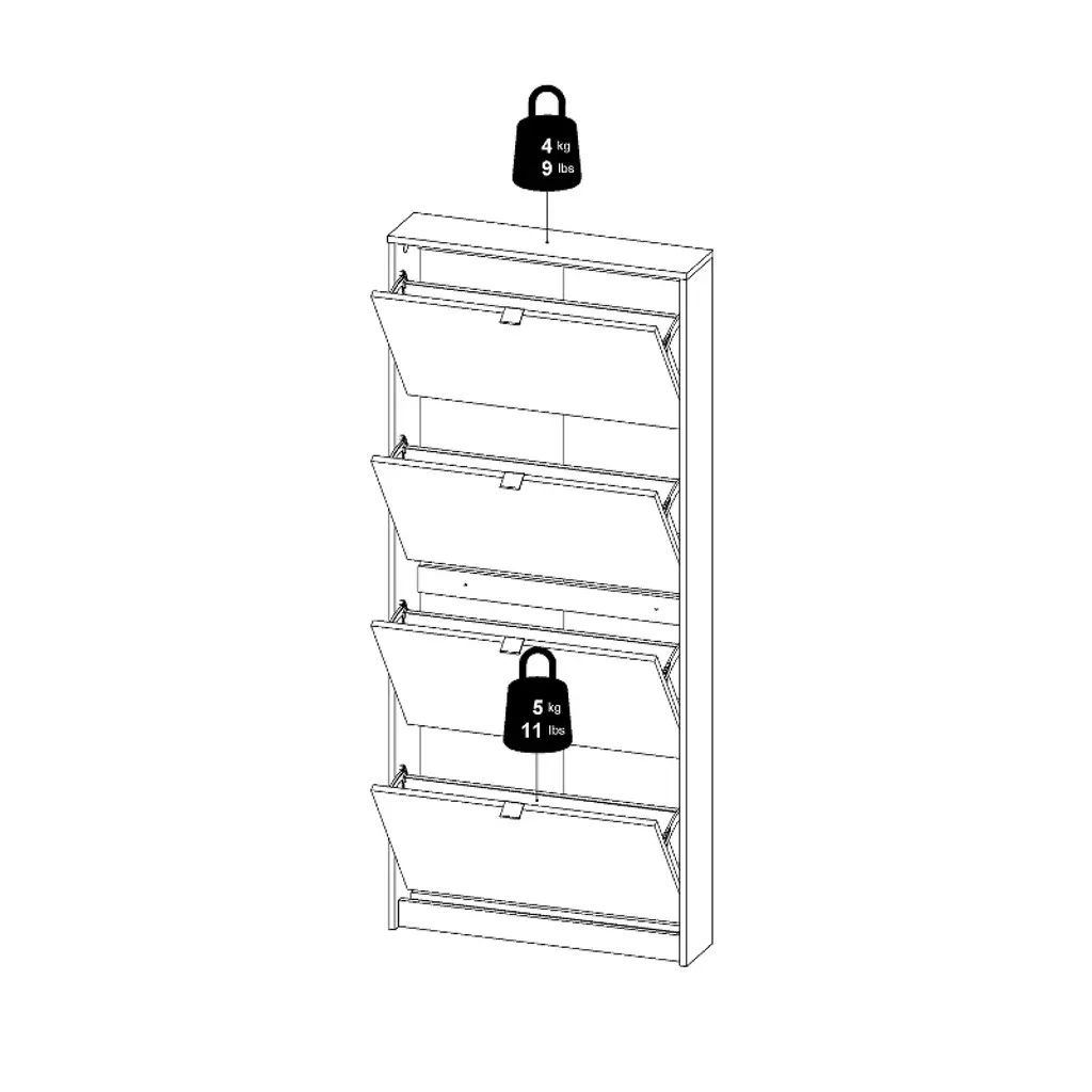 Organize all your footwear in one place and create a clutter-free space with the Drawer Shoe Cabinet. With room for two rows of shoes in each compartment, the Drawer Shoe Cabinet will protect about 18 pairs of your footwear, keeping them looking new! The tilting drawers ensures quick and easy access to your shoes when rushing out the door. This Scandinavian design has a foil surface that is easy to clean and less susceptible to scoring, while providing a durable and functional storage piece that looks anything but utilitarian. Combine with other pieces from the collection to build a shoe cabinet unit