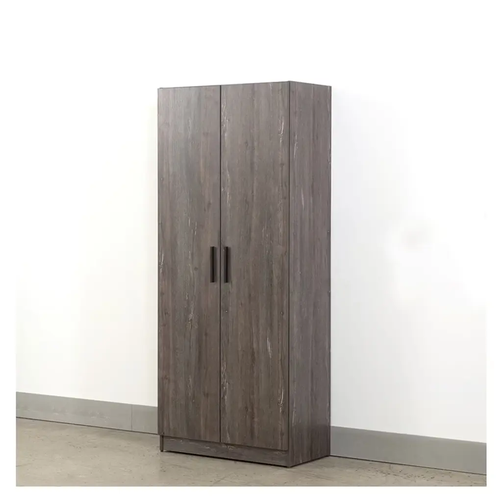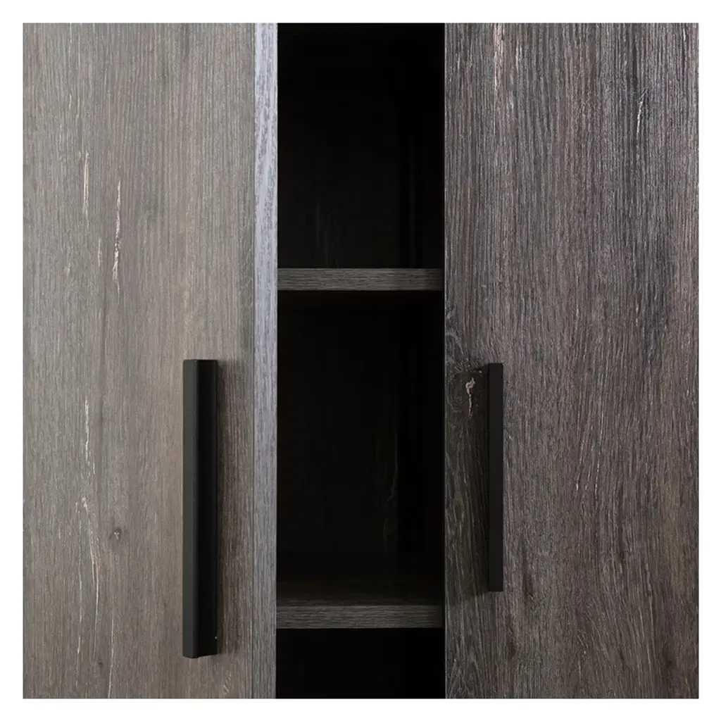 Simplify the way you store shoes with a wood shoe cabinet. Six spacious shelving units easily house sneakers, heels, boots, and more. Conceal your shoe collection by way of two large cabinet doors, coming in a weathered exterior with black bar pulls.
