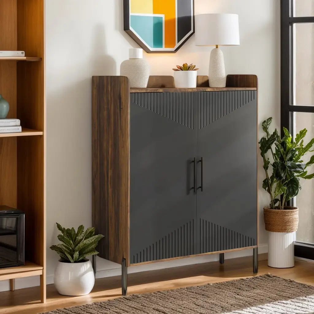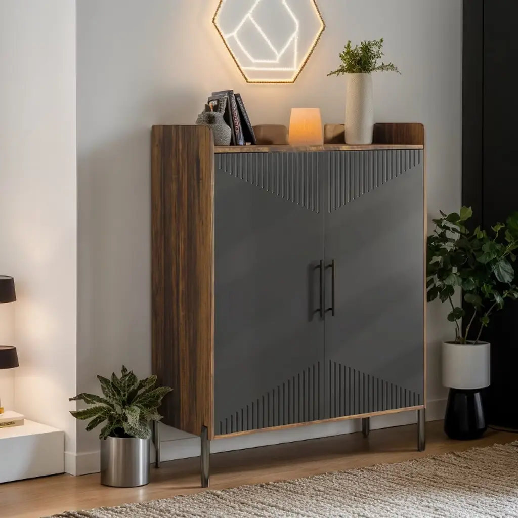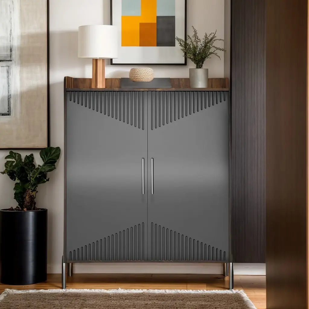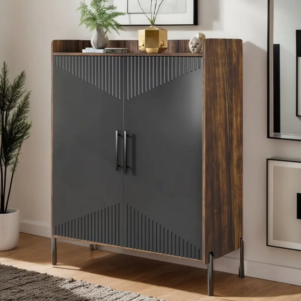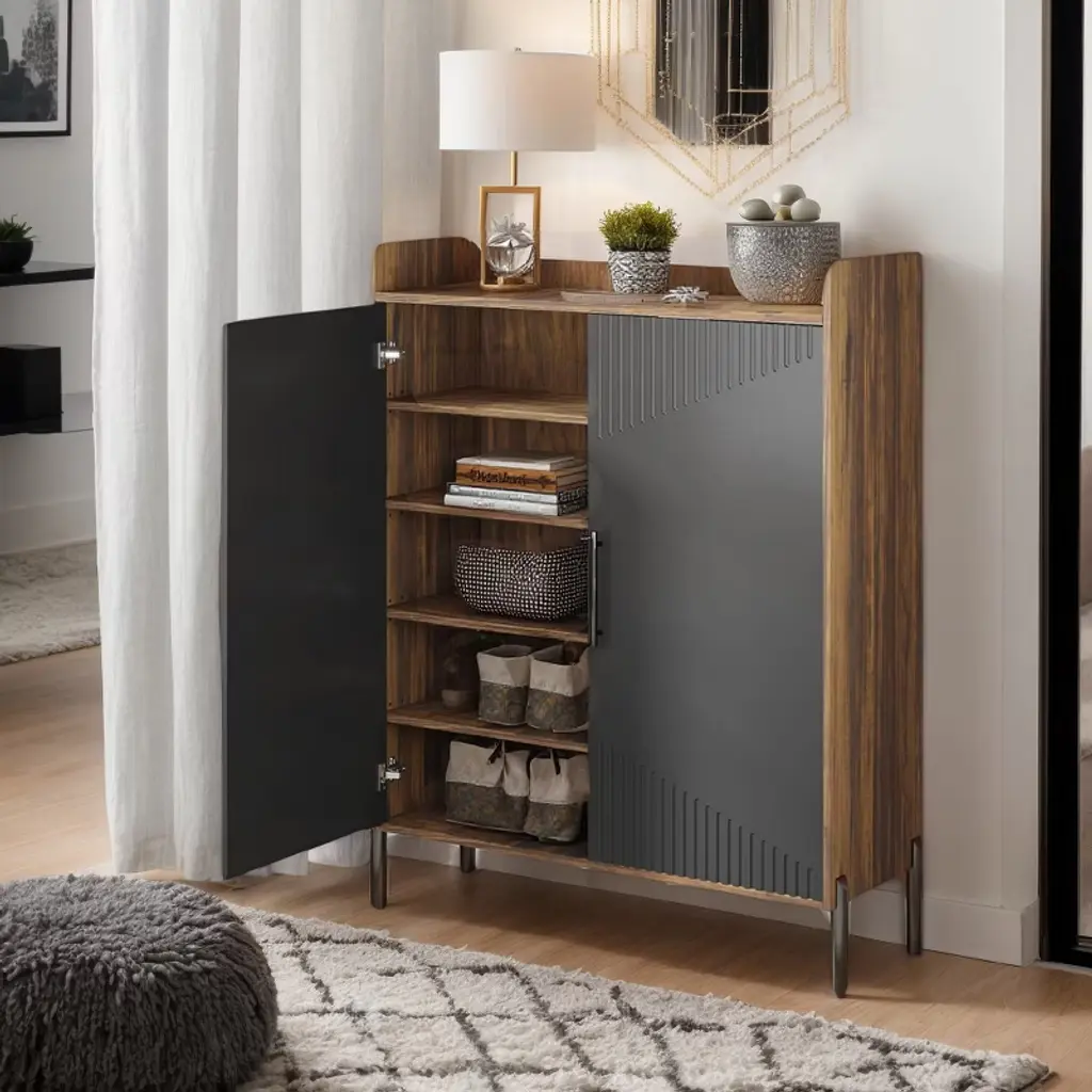 Elevate your home's entryway with our elegant shoe cabinet, featuring a classic finish, polished legs, and adjustable shelving for 25-30 pairs of shoes. Its versatile design fits any room, while durable construction ensures longevity.