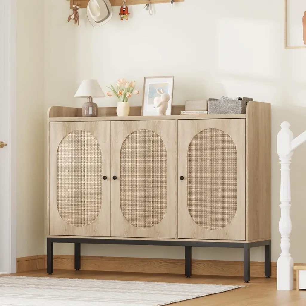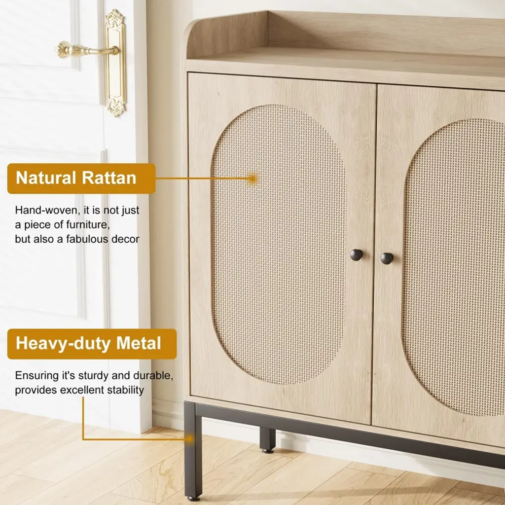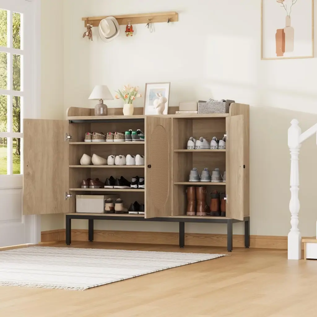 Jojoka Boho-style Rattan Shoe Cabinet ̈C Freestanding 3-door Organizer With Large Storage Capacity For 24-28 Shoes, Natural