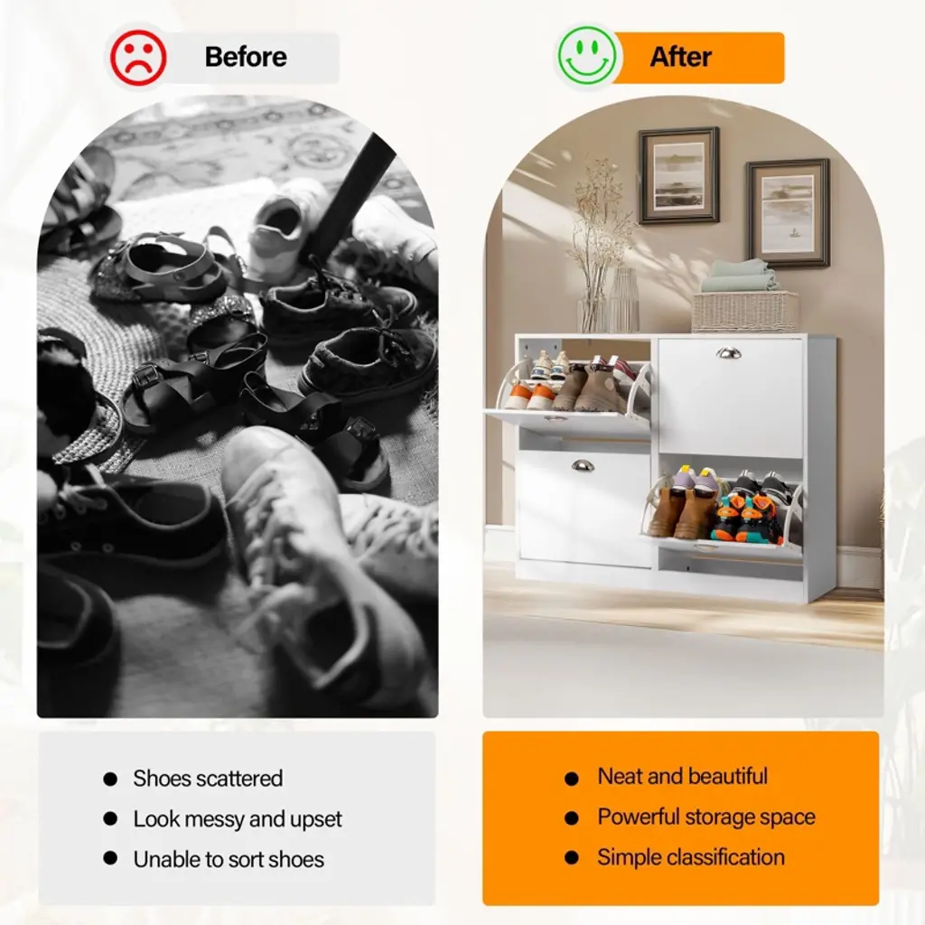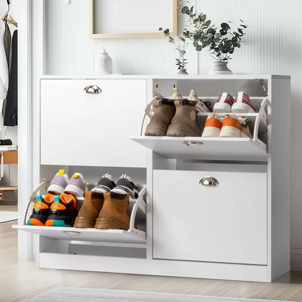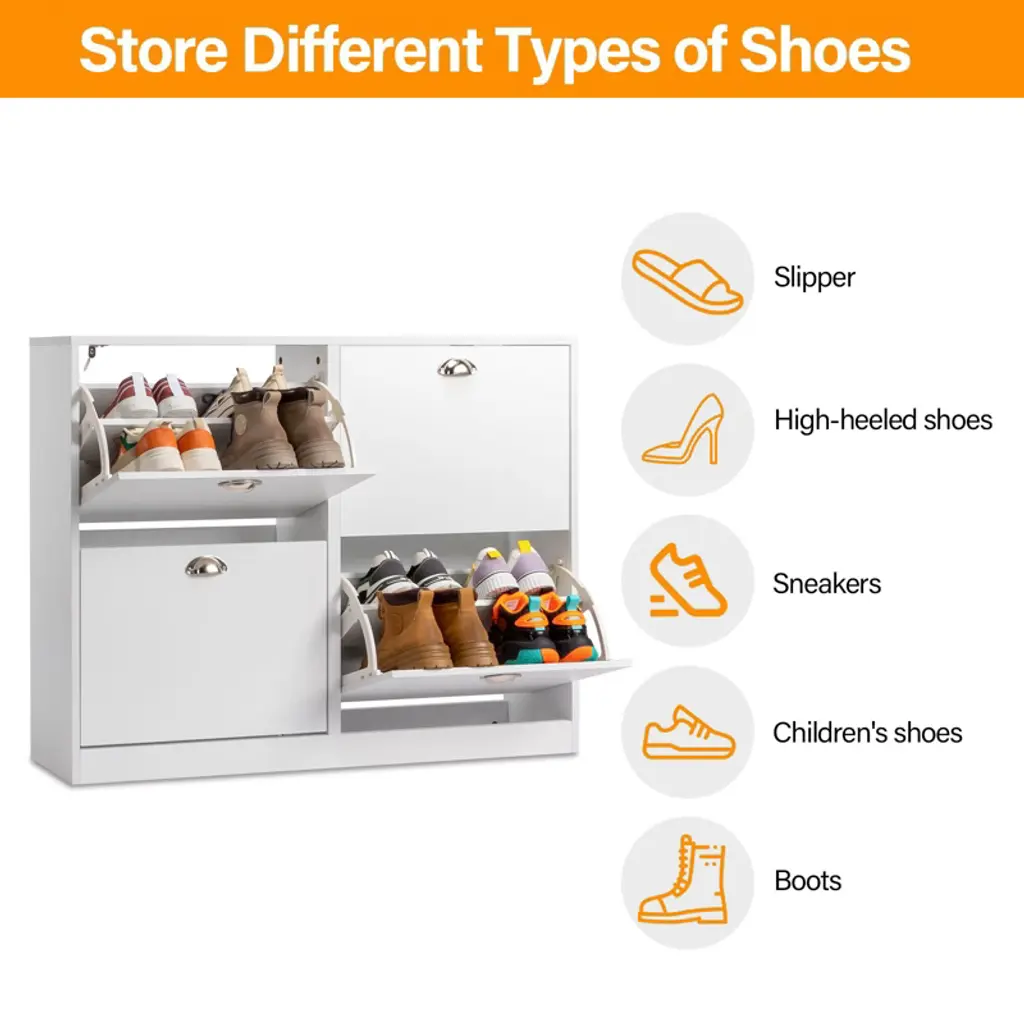 Karl Home 4 Flip Drawers White Particle Board 40.16in. W Shoe Cabinets