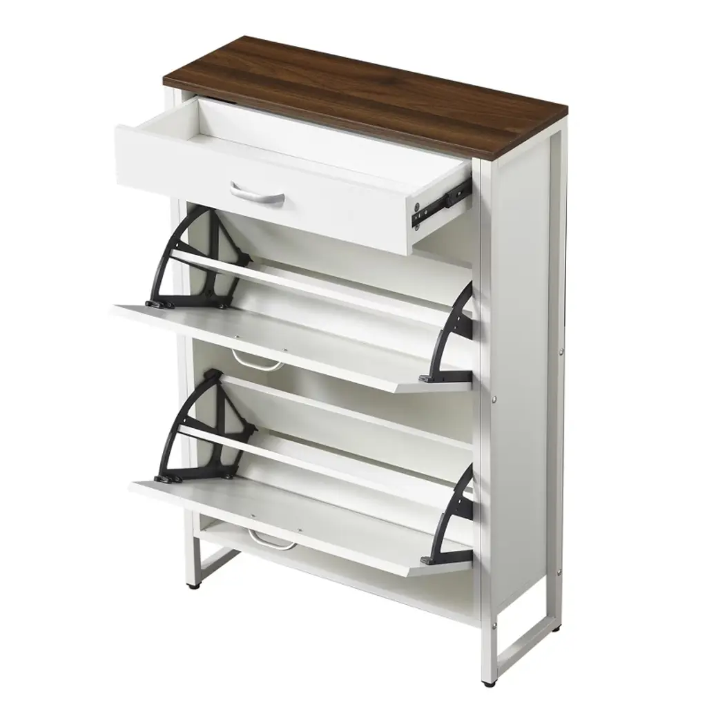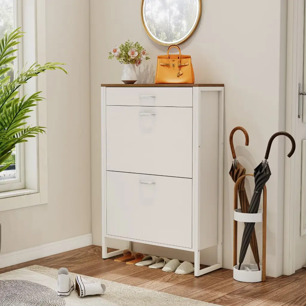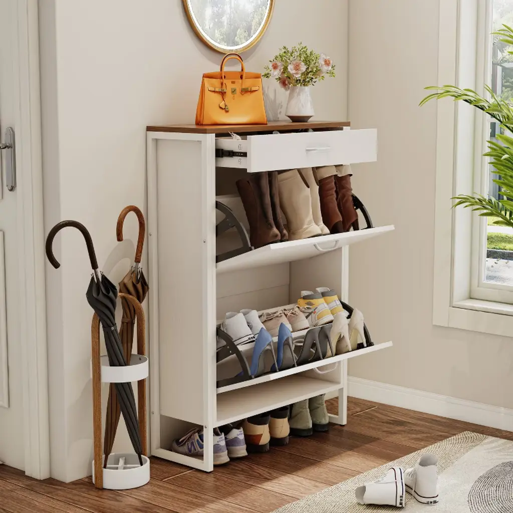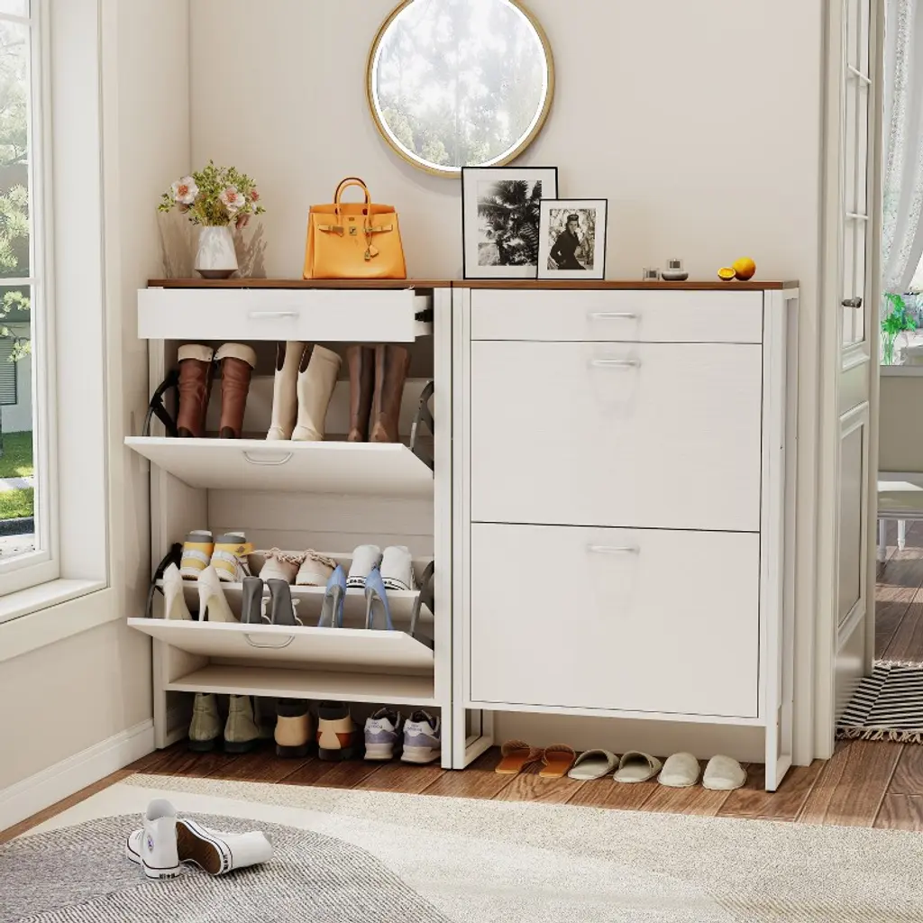 Ktmbdw Shoe Cabinet With 2 Flip Drawers And 1 Drawer, Hidden Wood Shoe Cabinet, Freestanding Shoe Storage Cabinet For Entryway, Hallway, White