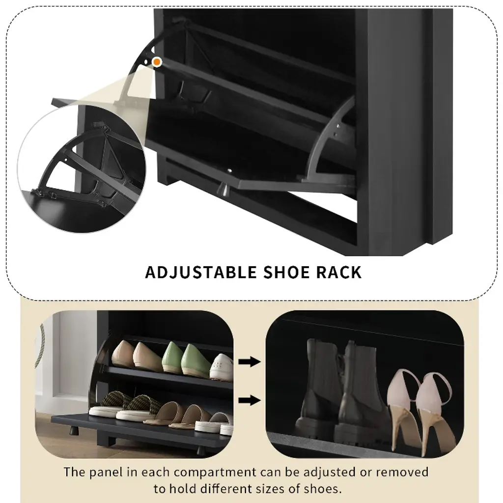 Ktmbdw Shoe Cabinet With 2 Flip Drawers And Adjustable Panel, Hidden Wood Shoe Cabinet,freestanding Shoe Storage Cabinet For Entryway Hallway, Black