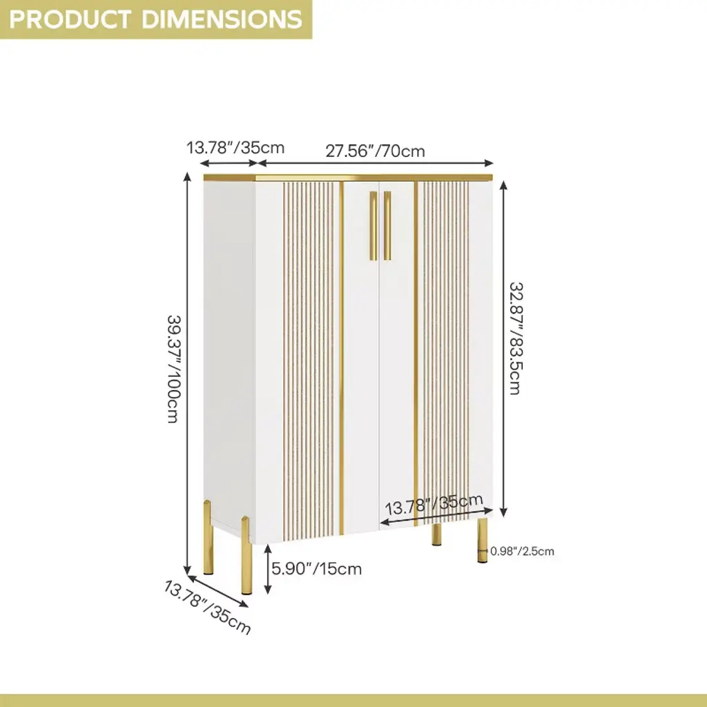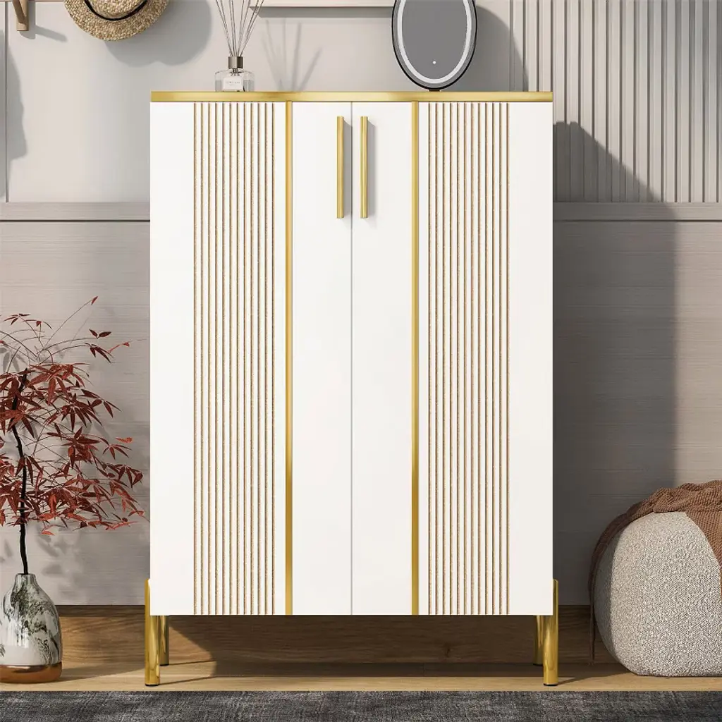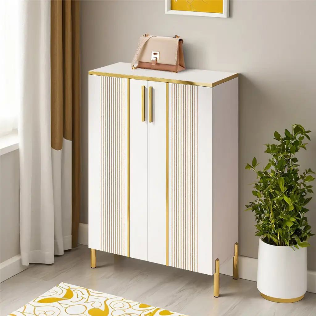 Resenkos 6-tier Wooden Shoe Cabinet, Space-saving Organizer With Sliding Doors, Perfect For Home & Office, Gold & White