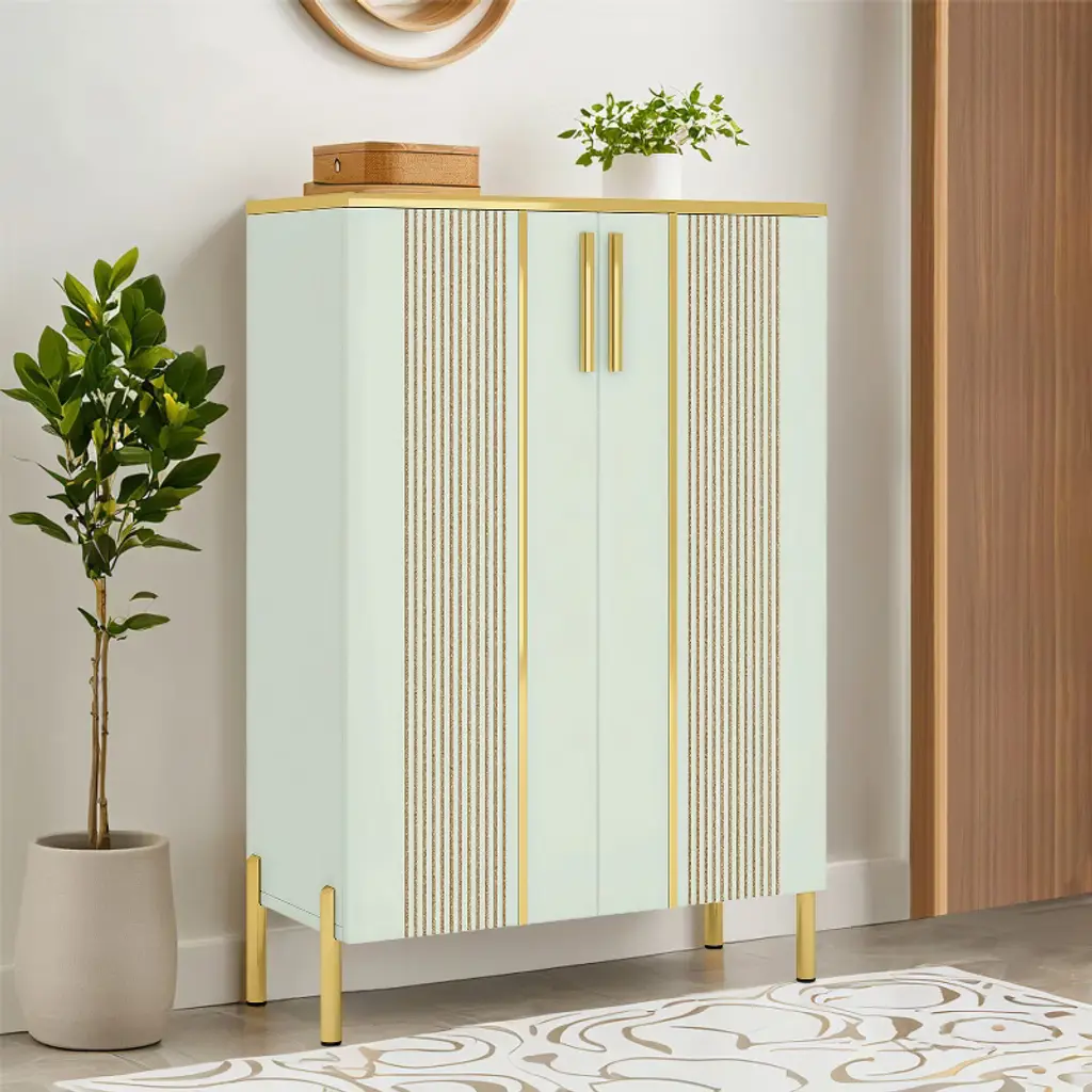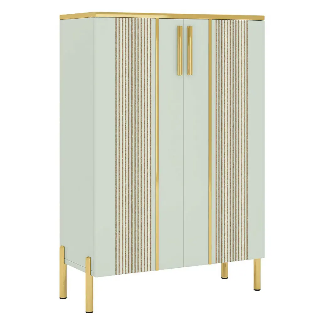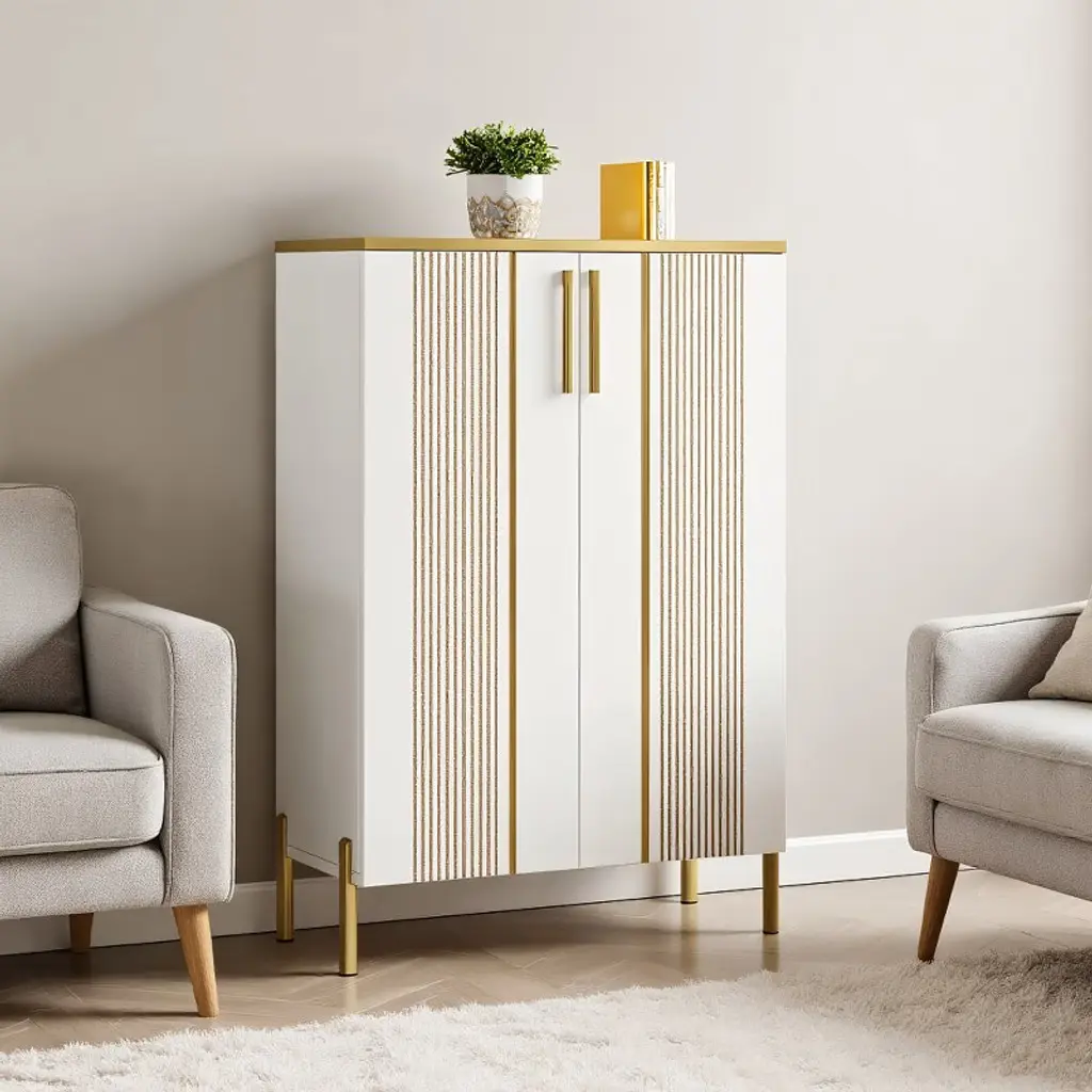 Resenkos 6-tier Wooden Shoe Cabinet, Space-saving Organizer With Sliding Doors, Perfect For Home & Office, Gold & White