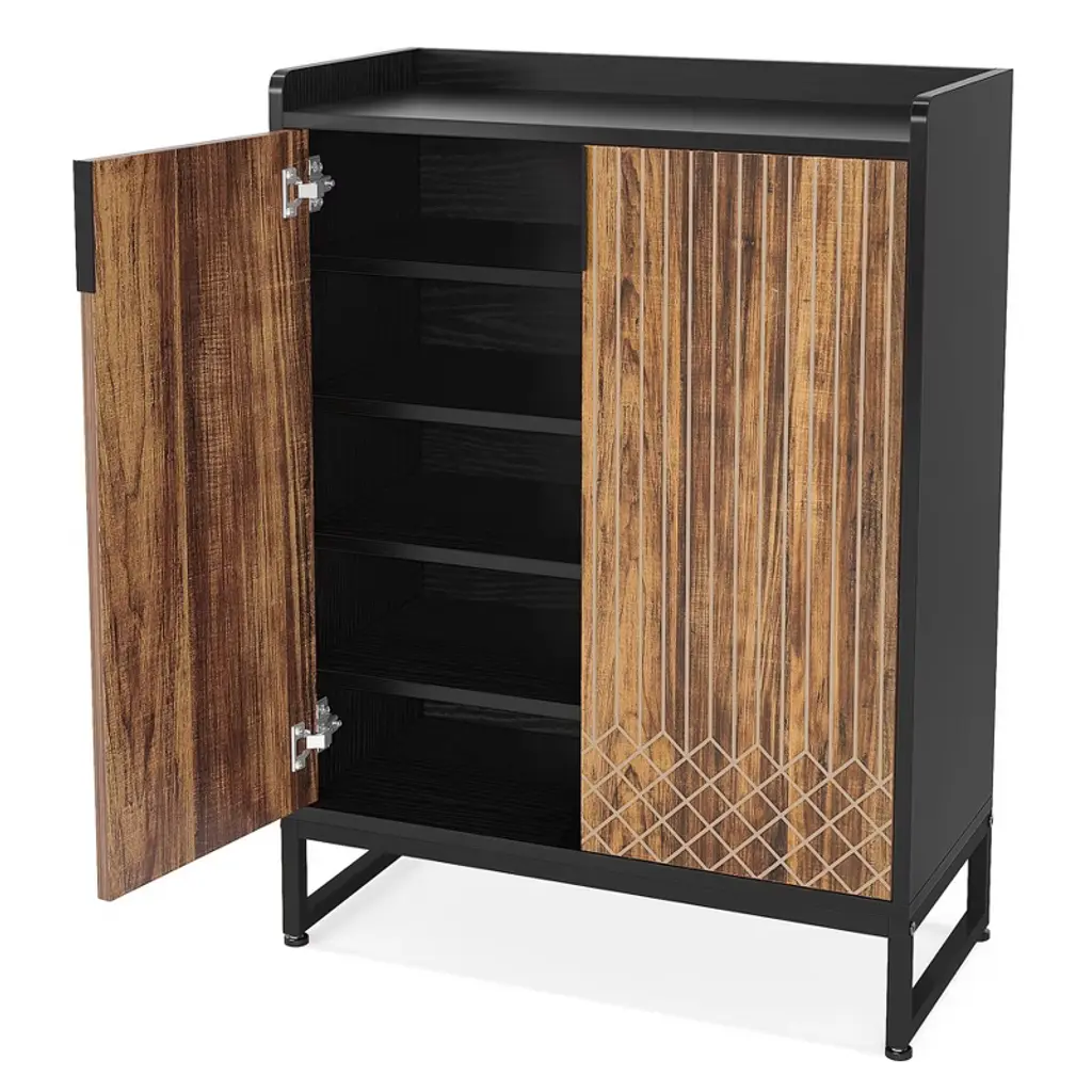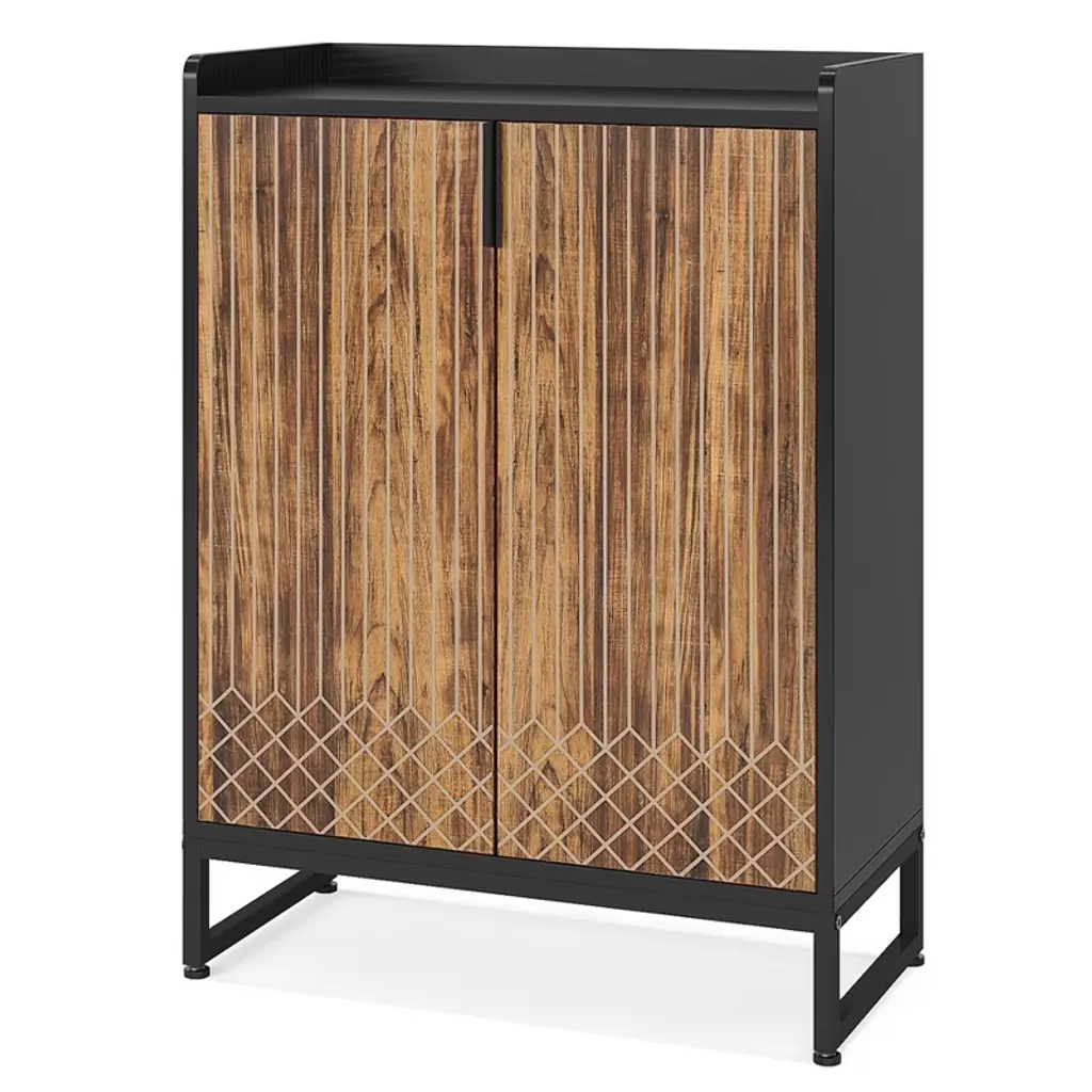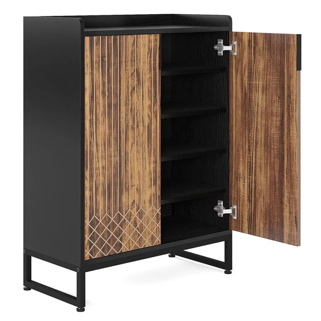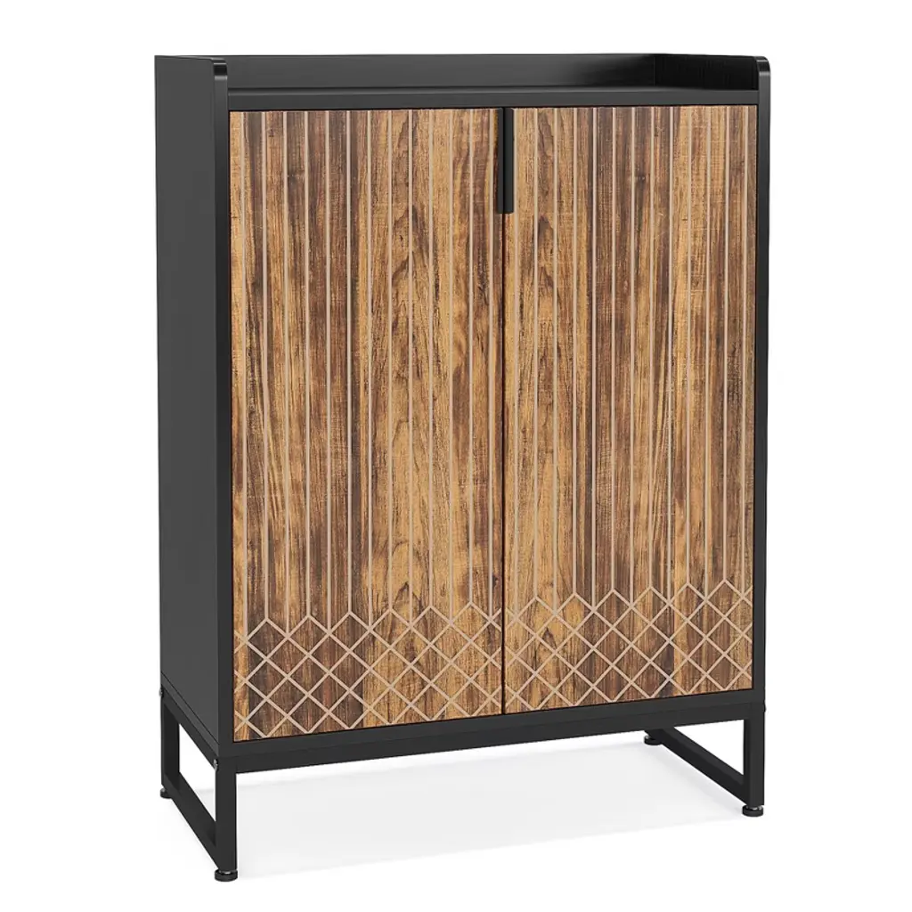 Resenkos Shoe Storage Cabinet, Contemporary Diamond Pattern Shoe Cabinet - 29.52"w X 41.34"h For Easy Organization, Brown&black Brown & Black