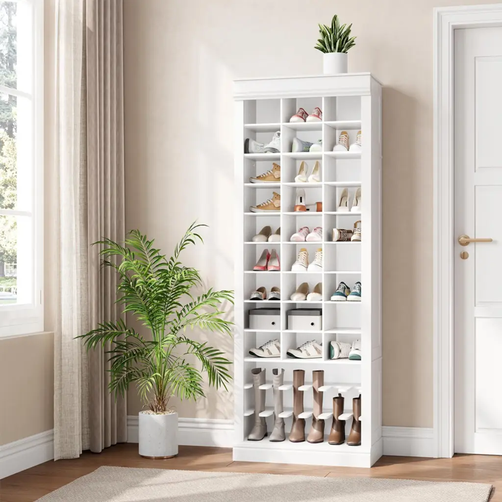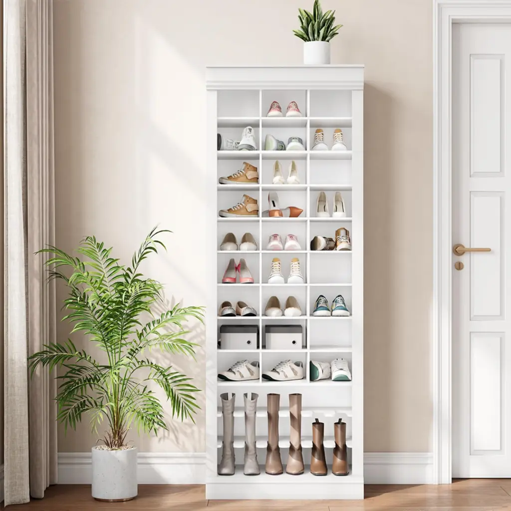 10-Tier Shoe Cabinet with Tall Boot Storage ¨C 27-Cubby Entryway Organizer for Hallway & Living RoomProduct Specifications Brand: TROPOW Material: MDF & Particle Board (Painted/Lacquered Finish) Dimensions: 24.02"W x 13.89"D x 73.35"H Weight Capacity: Sturdy construction for heavy shoe collections Shelves: 10 tiers (27 cubbies + tall boot storage) Storage Capacity: Holds 30+ pairs of shoes (including boots) Safety Feature: Includes anti-tip device for wall anchoring Assembly Required: Yes (tools & instructions included) Care Instructions: Wipe clean with damp cloth Key Features?? Massive Shoe Storage Capacity 27 Individual Cubbies ¨C Organize sneakers, flats, and sandals with ease Dedicated Tall Boot Section ¨C Special compartment fits knee-high & winter boots Top Display Shelf ¨C Perfect for plants, decor, or everyday essentials ??? Space-Saving & Versatile Freestanding Slim Design (13.89" depth) fits tight spaces Multi-Room Use: Ideal for entryways, hallways, mudrooms & closets Mid-Century Modern Style blends with contemporary decor ??? Durable & Family-Safe High-Quality MDF Construction ¨C Scratch-resistant & long-lasting Anti-Tip Device Included ¨C Can be secured to wall for child/pet safety Easy-Clean Surface ¨C Maintains like-new appearance ?? Hassle-Free Assembly Pre-Labeled Parts for intuitive setup Clear Instructions ¨C Even beginners can assemble quickly Why Choose This Shoe Organizer?? Unmatched Capacity ¨C Stores entire shoe collections in one place? Smart Vertical Design ¨C Maximizes small spaces (perfect for apartments)? Boot-Friendly Storage ¨C No more squashed or folded boots