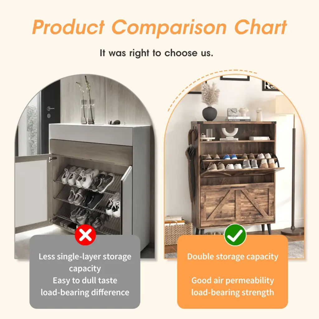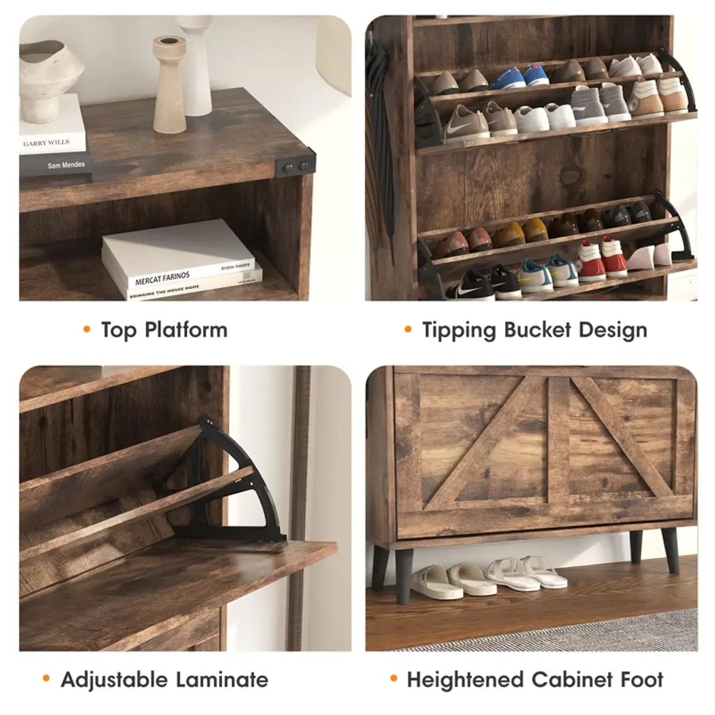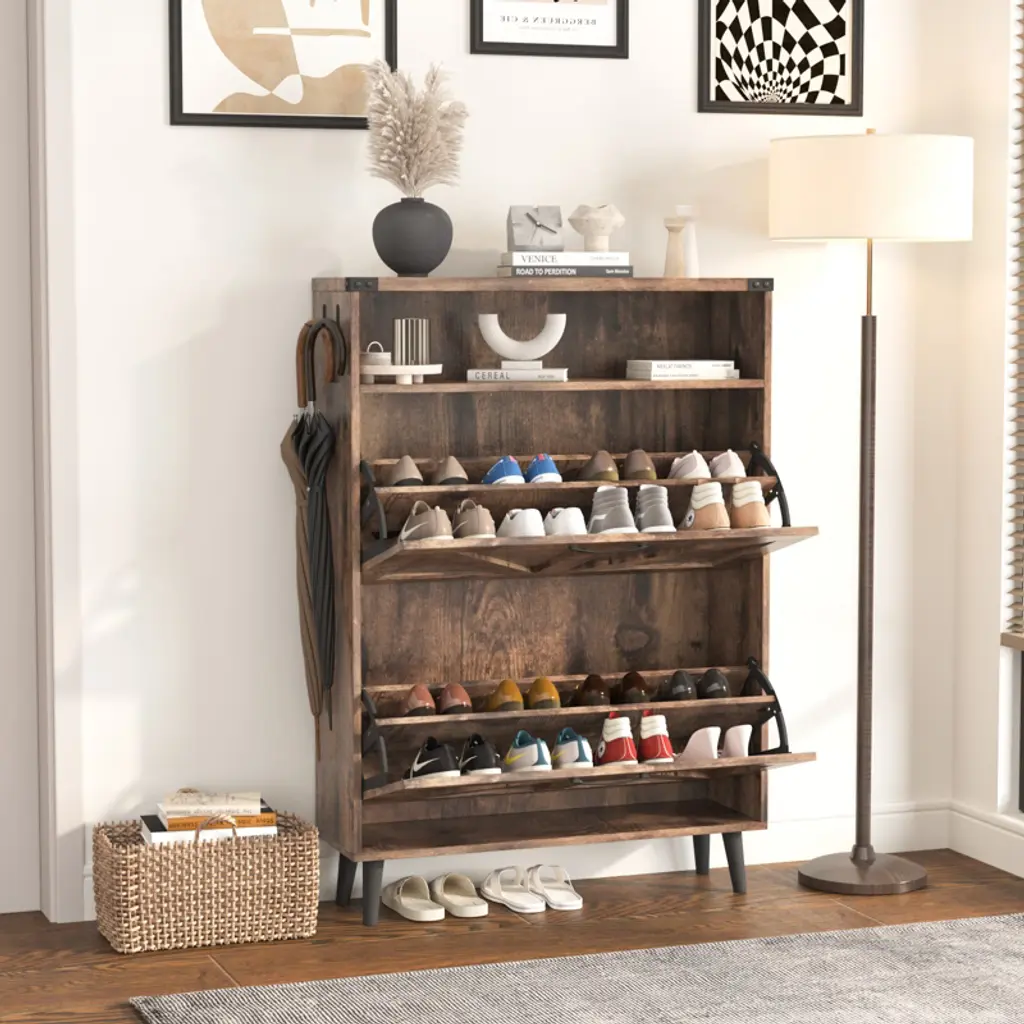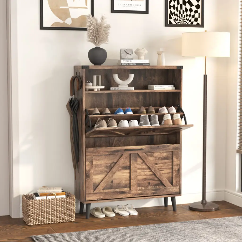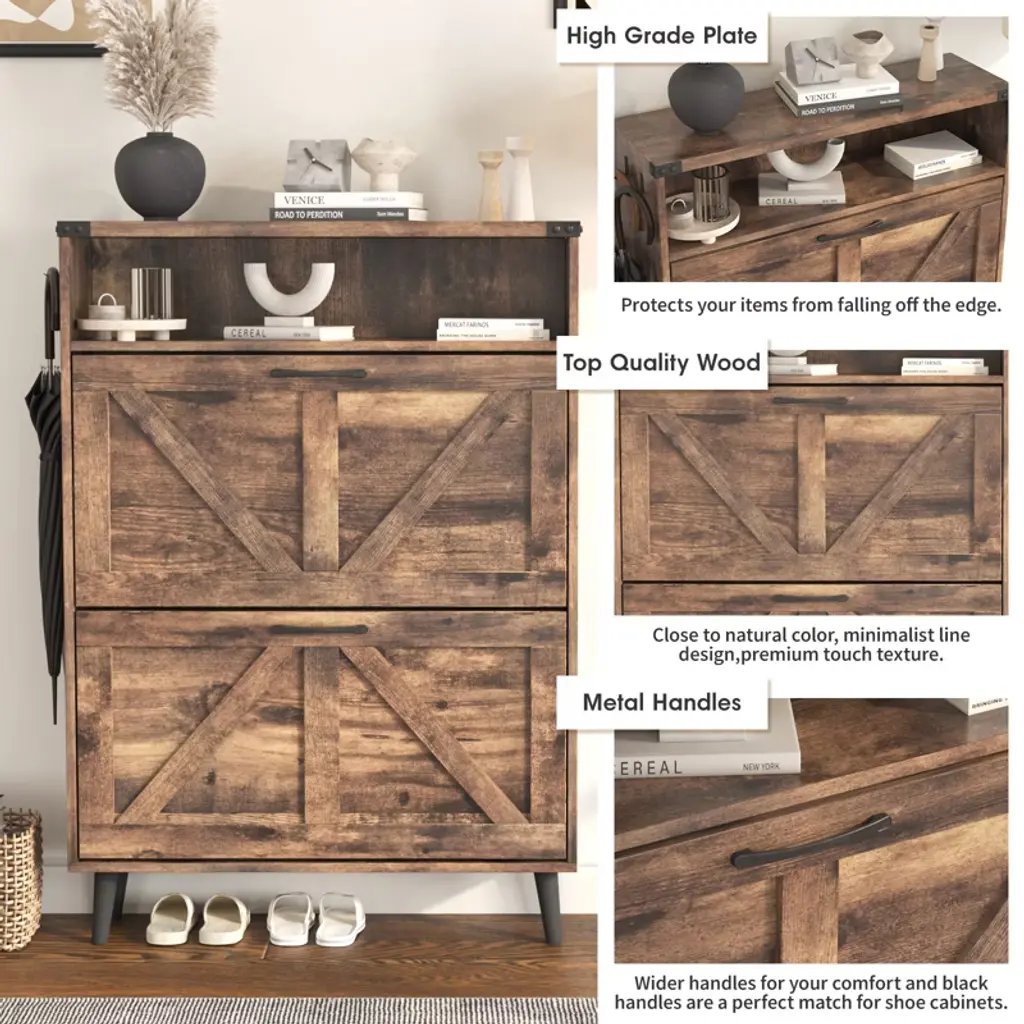 Shoe Cabinet With 2 Flip Drawers & Open Storage,brown