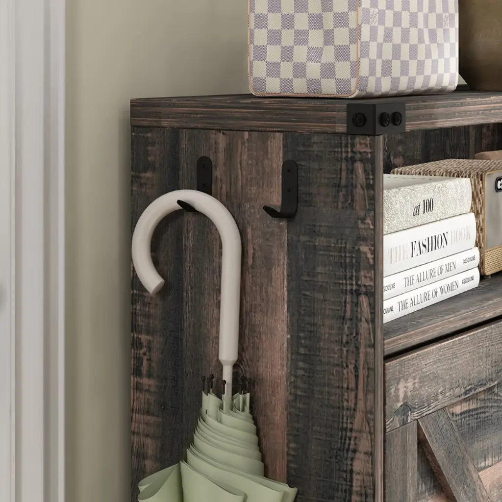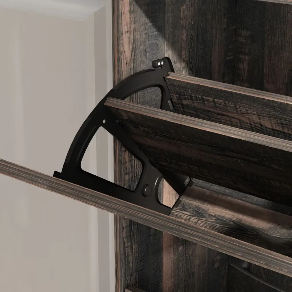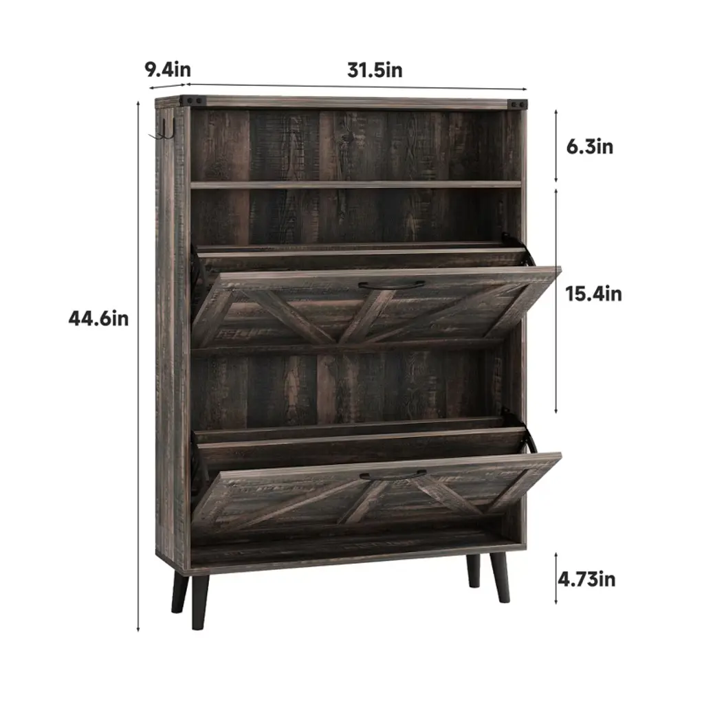 Shoe Cabinet With 2 Flip Drawers & Open Storage,dark Rustic Oak