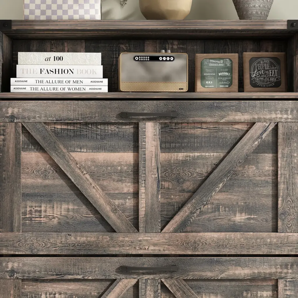 There are two upper and lower drawers, each drawer contains two layers of storage space,This pretty much caters to the whole family.The spacious top surface and open top cubby are perfect for accessories, keys, wallet and etc and make you easier to access items.