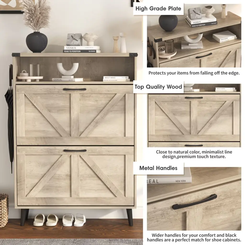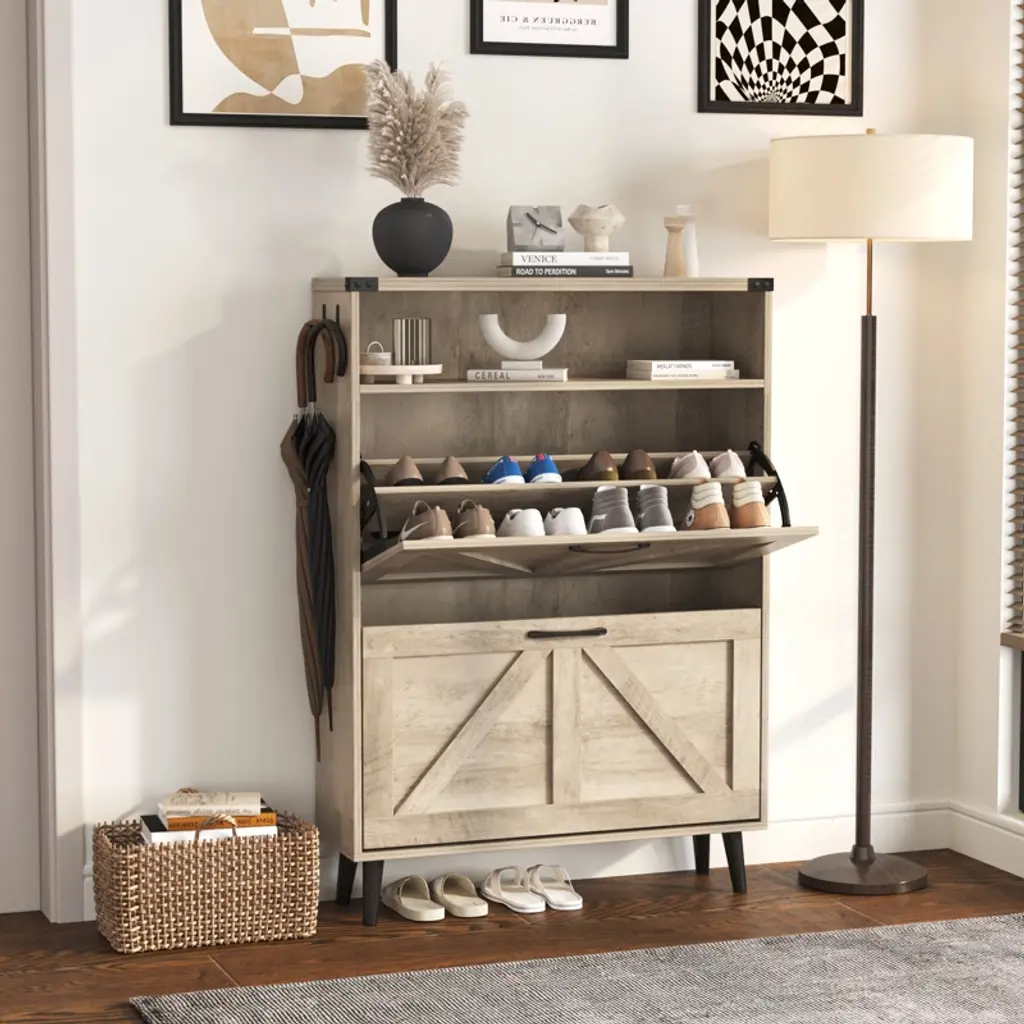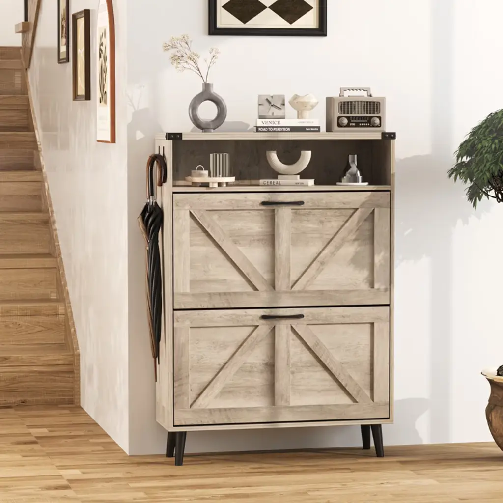 Shoe Cabinet With 2 Flip Drawers & Open Storage,gray