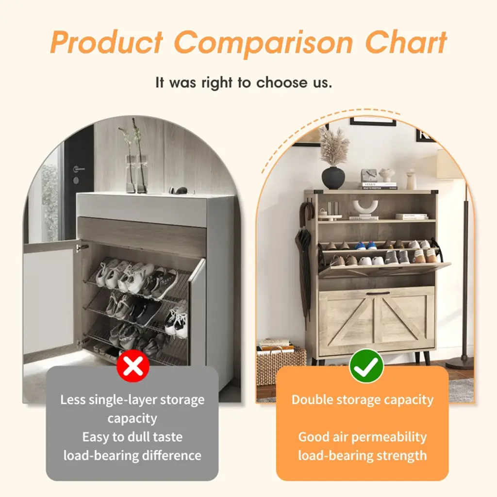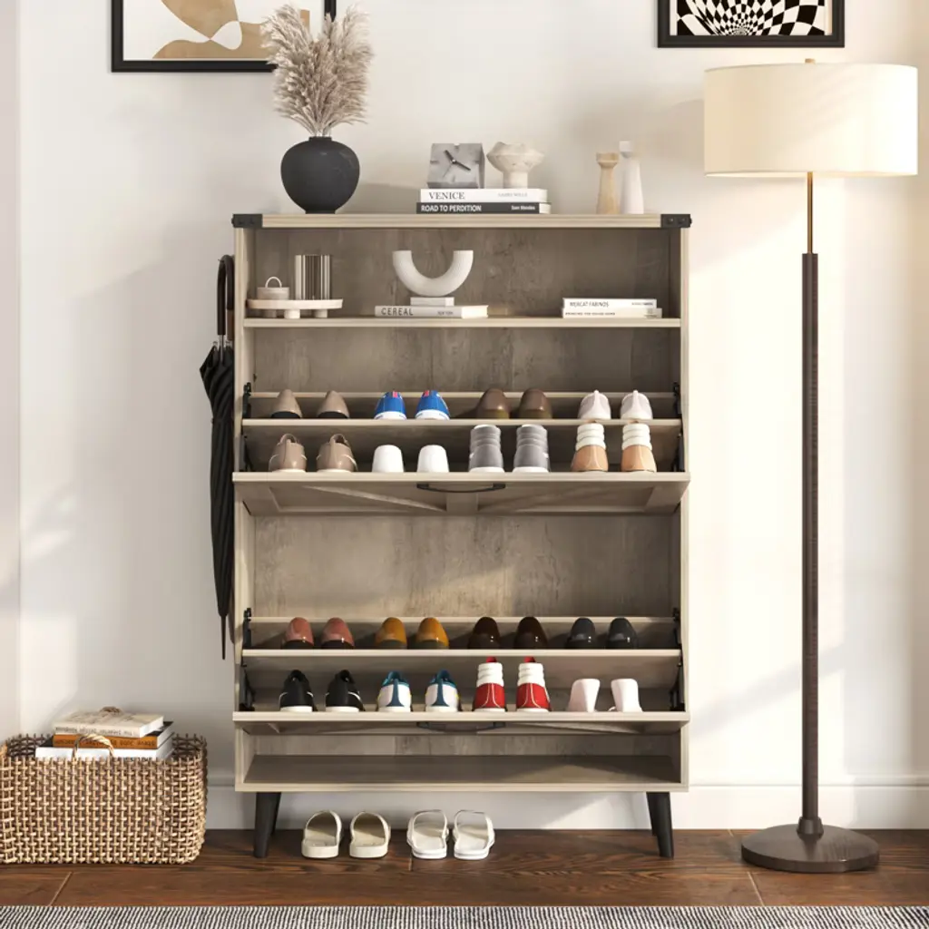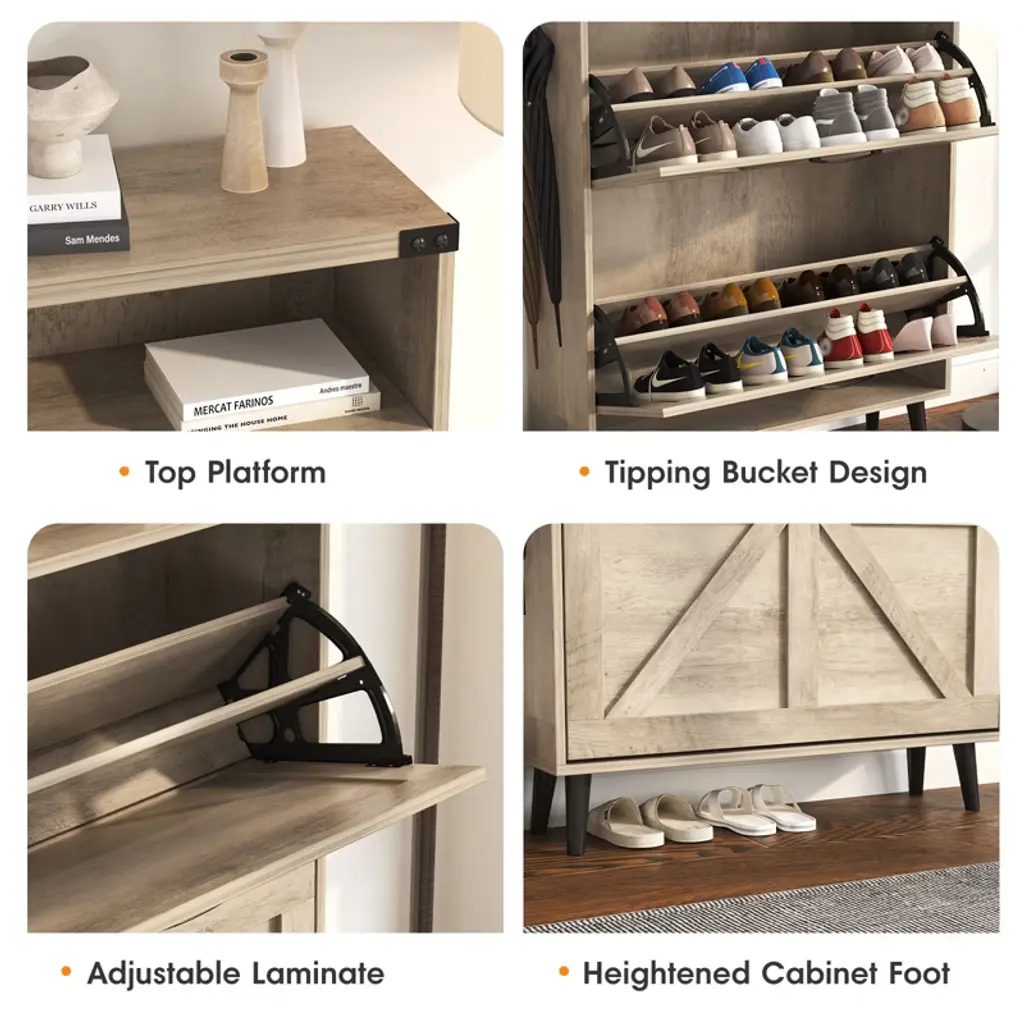 Shoe Cabinet With 2 Flip Drawers & Open Storage,gray