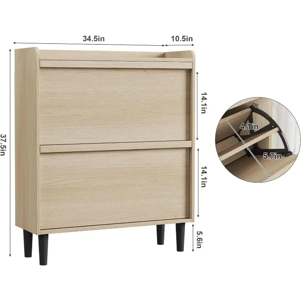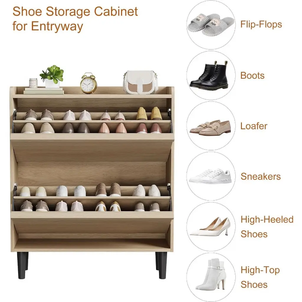 Shoe Cabinet With 2 Flip Drawers, Wooden Shoe Organizer With Adjustable Shelf