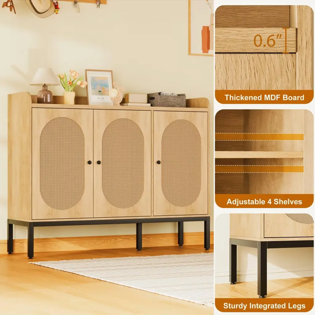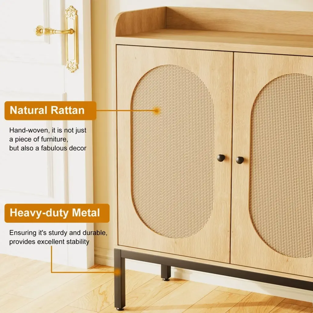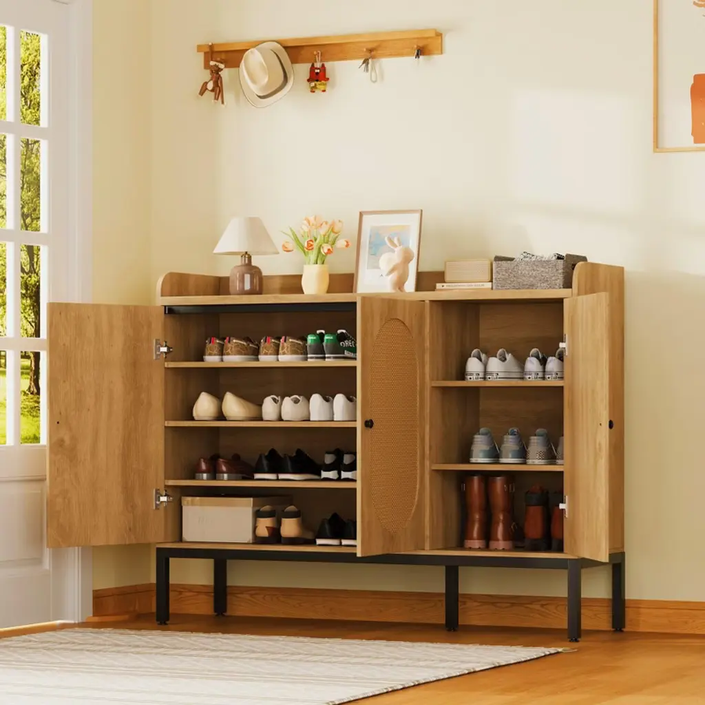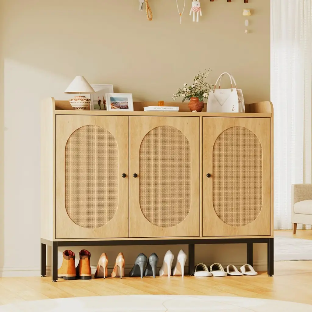 Shoe Storage Cabinet with Rattan Doors ¨C 7-Tier Freestanding Shoe Organizer for Entryway & Hallway*Product Description:Stylish & Functional Shoe Storage SolutionUpgrade your entryway, hallway, or closet with the TROPOW Shoe Storage Cabinet¡ªa chic and practical organizer designed to keep footwear neatly stored while enhancing your home decor. Featuring three rattan doors and adjustable shelves, this freestanding cabinet offers large storage capacity (24-28 pairs of shoes) while protecting against dust, pets, and insects. The modern design blends seamlessly into any space, making it ideal for apartments, dorms, or narrow hallways.Key Features:? Spacious & Adjustable Storage Dimensions: 46.1"W x 13.9"D x 28.7"H 7-tier design with adjustable shelves to fit boots, heels, and sneakers 3 rattan doors for concealed storage and a stylish look ? Durable & Stable Construction Made of high-quality MDF engineered wood for long-lasting use Thickened waterproof desktop for added stability Anti-tip device included for wall attachment (safety first!) ? Versatile & Space-Saving Perfect for entryways, hallways, closets, or small spaces Freestanding design¡ªno built-in installation required Neutral, warm-toned finish complements any decor ? Easy Assembly Clear step-by-step instructions with labeled parts All necessary screws & hardware included Ships in secure packaging to prevent damage Product Specifications: Brand: TROPOW Material: Engineered Wood (MDF) + Rattan Doors Weight: 80 lbs Color: Natural Wood & Rattan Shelves: 7 tiers (adjustable) Doors: 3 rattan-front doors Special Features: Anti-tipping device Weatherproof & heavy-duty Adjustable shelf heights Ideal For: Storing shoes, boots, sandals, or small accessories while keeping your space clutter-free. A must-have for organized homes, apartments, and entryways!Note: Ships flat-packed for easy transport and assembly.Why Choose This Shoe Cabinet?? More storage than basic shoe racks? Dust-proof & pet-resistant with enclosed doors? Sturdy & safe with anti-tip protection? Sleek design that elevates your home aesthetic