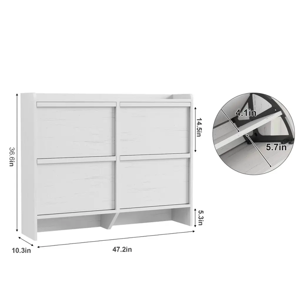 Shoe Cabinet With 4 Flip Drawers, Wooden Shoe Organizer With Adjustable Shelf, Shoe Storage For Entryway,