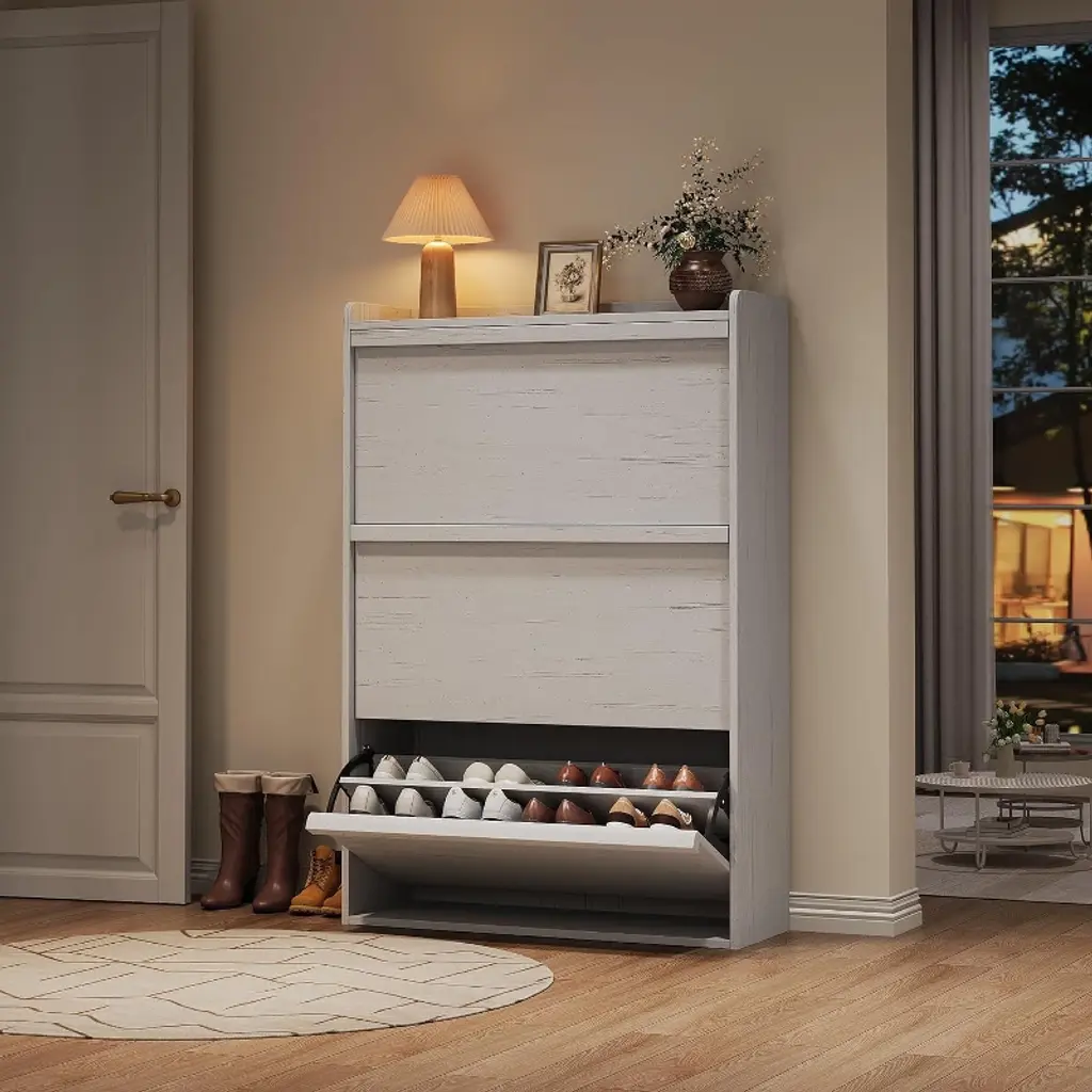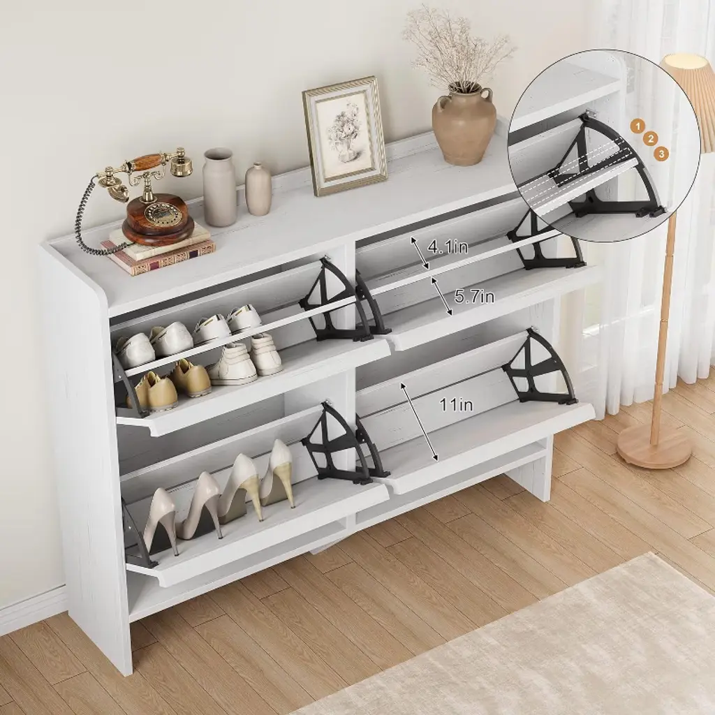 Shoe Cabinet With 4 Flip Drawers, Wooden Shoe Organizer With Adjustable Shelf,white