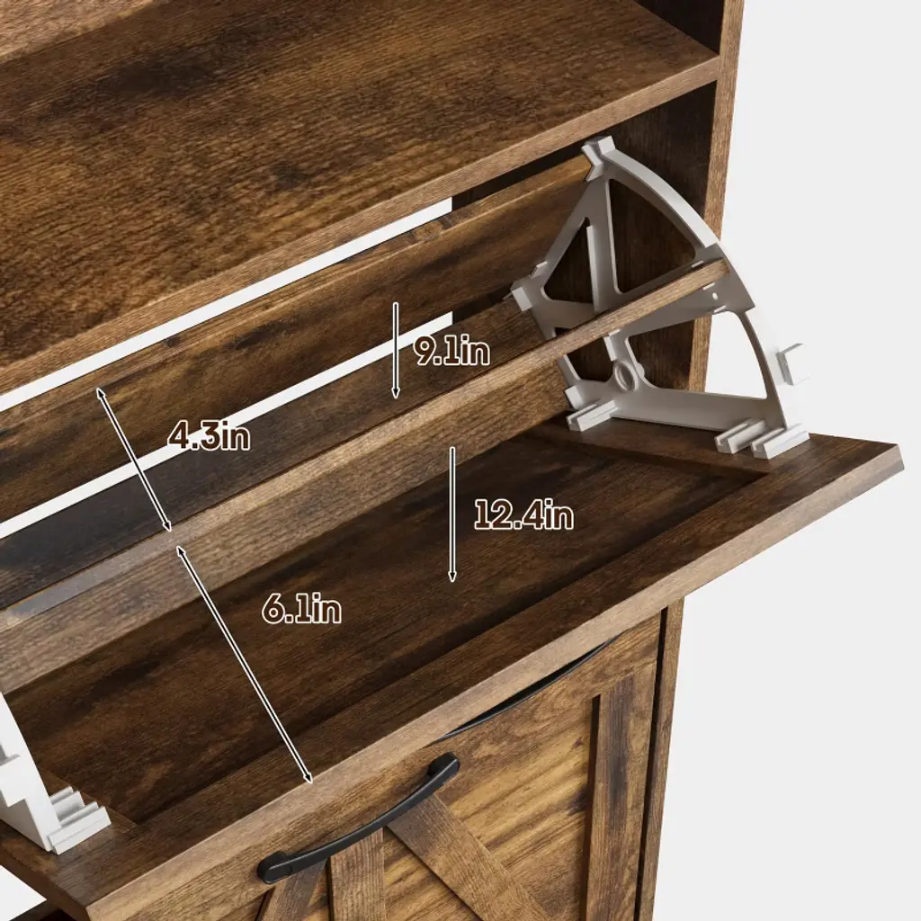 Shoe Cabinet With Flip Drawers, Narrow Freestanding Rack, Brown