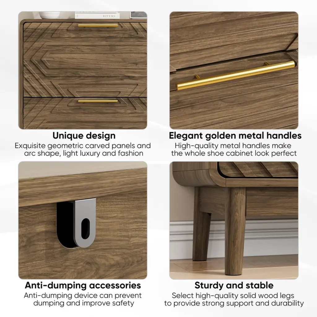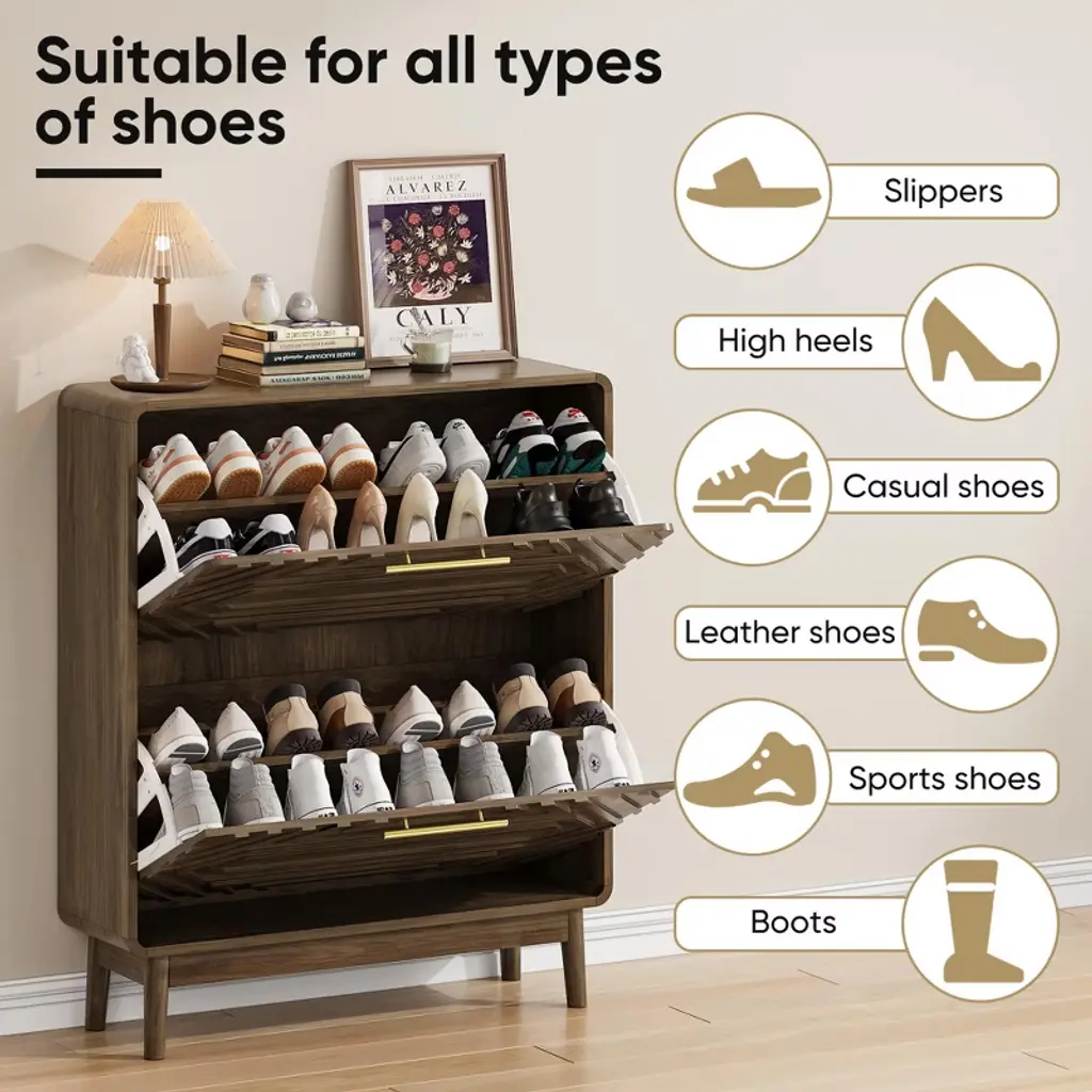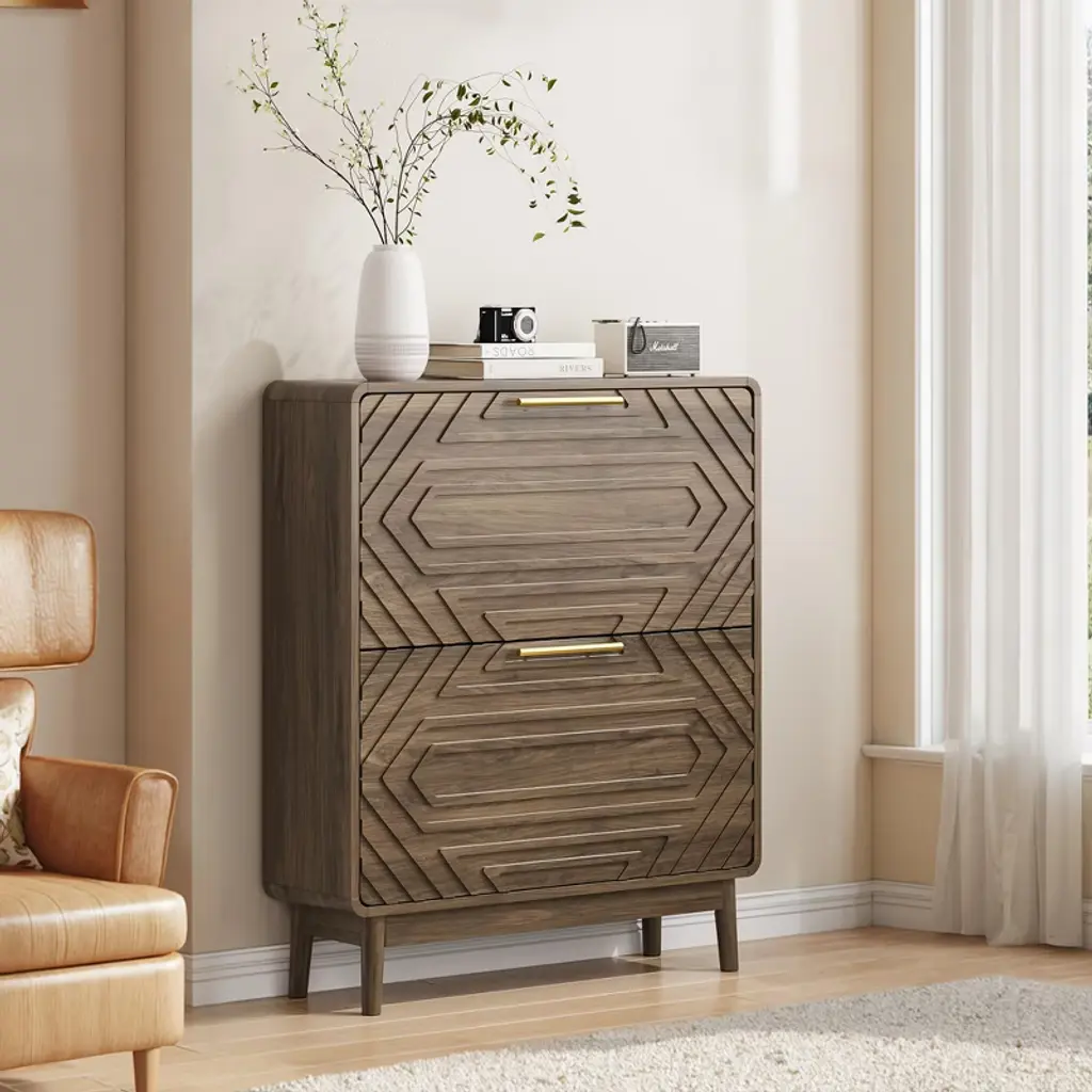 Tiramisubest 31.5" Walnut Shoe Cabinet With 2 Flip Drawers, Mid-century Freestanding Storage For Hallway & Entryway