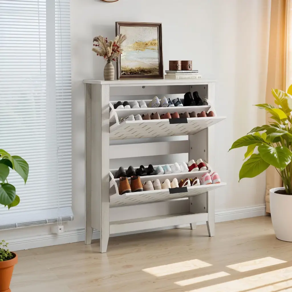 Keep your entryway, hallway, or closet neat and organized with the Shoe Rack. Designed in a neutral antique grey finish, this shoe organizer blends seamlessly with a variety of home styles, from modern to rustic,making it a practical solution for families or individuals looking to save space. Its engineered wood construction ensures stability and durability, so you can store everything from sneakers and sandals to boots without worrying about tipping or wobbling.The open design provides easy visibility and quick access to your footwear, so you can grab what you need and head out the door in seconds. Compact yet functional, this shoe rack is perfect for entryways, bedrooms, mudrooms, or closets.Upgrade your home storage with this sturdy, stylish, and space-efficient shoe organizer.