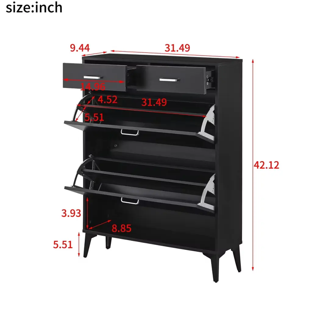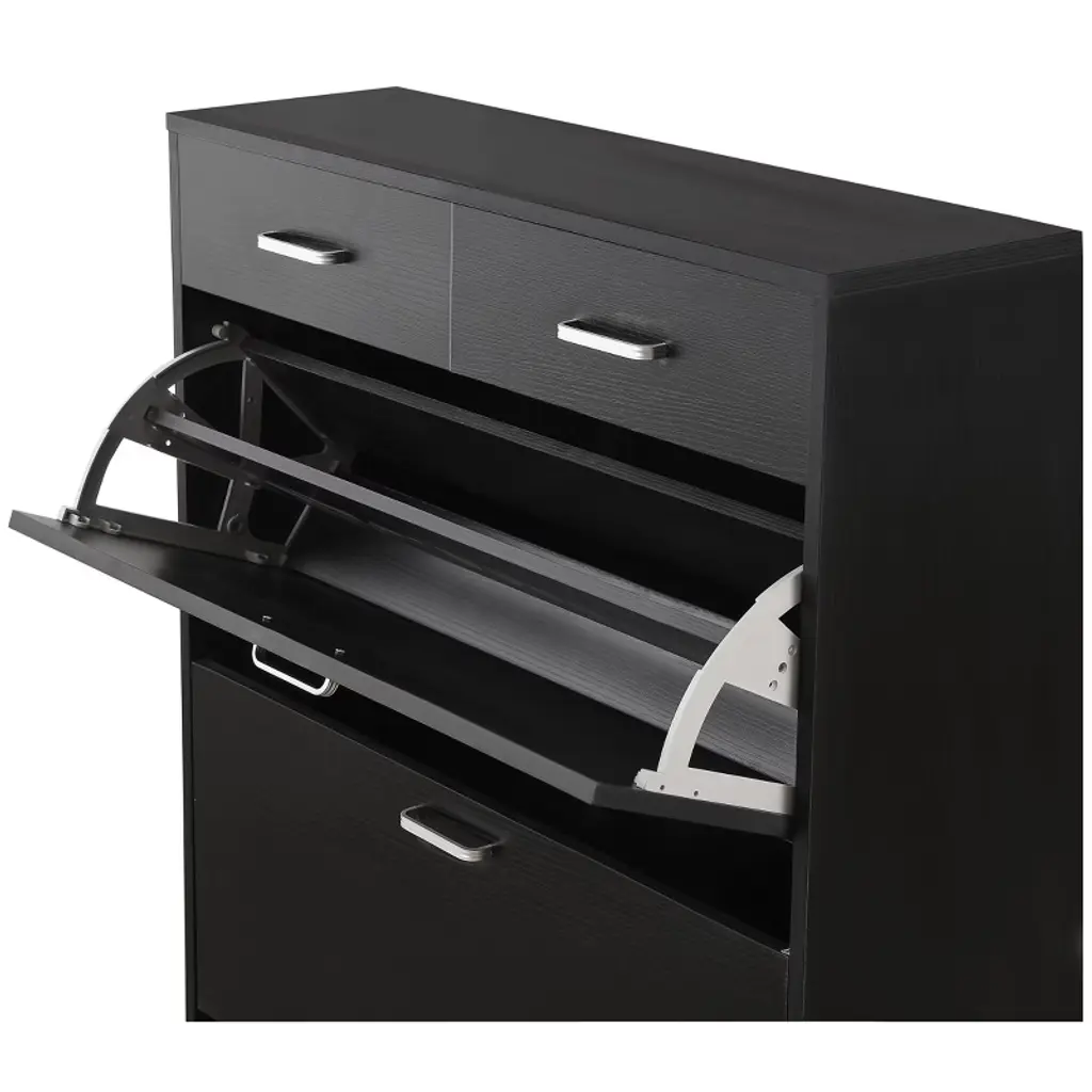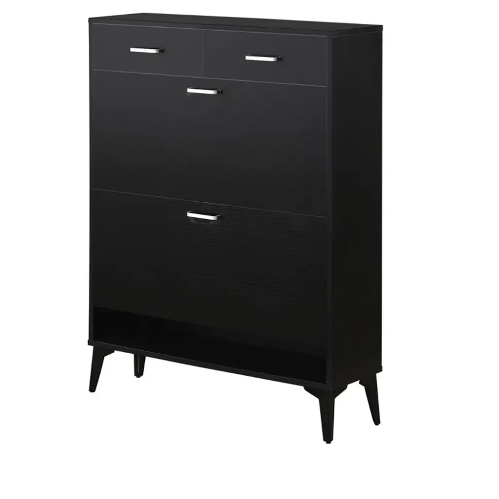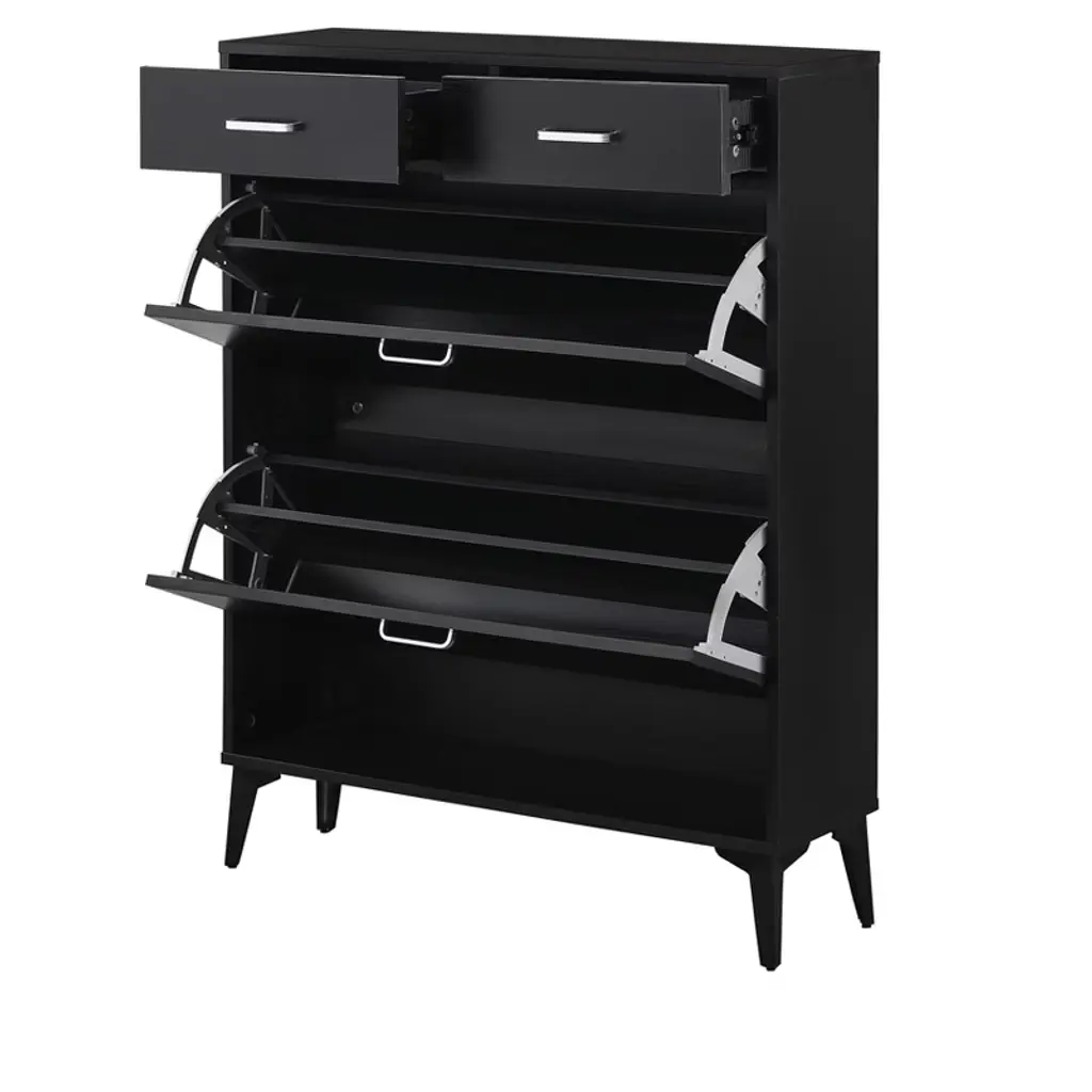 Tiramisubest Black Large Shoe Cabinet - Freestanding 4-drawer Organizer With Flip Doors For Entryway, Hallway Or Bedroom