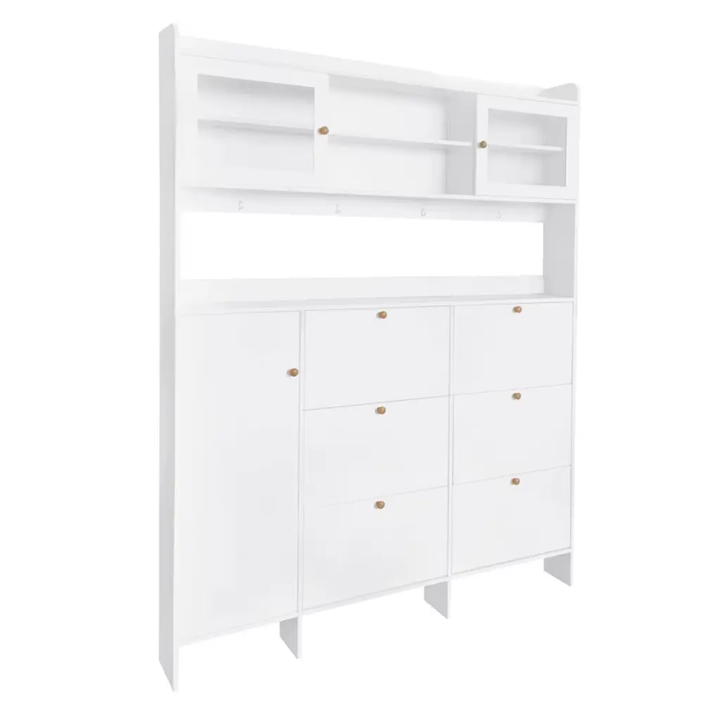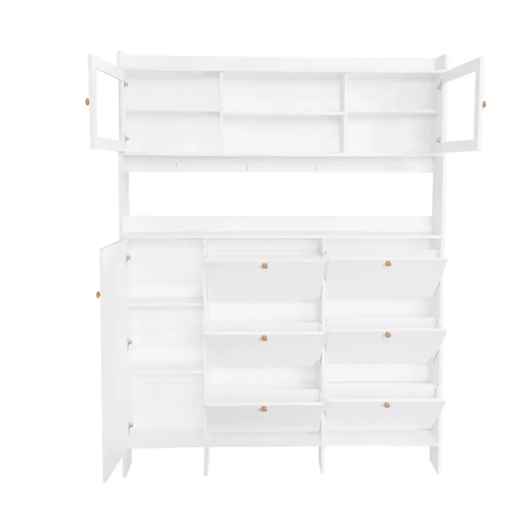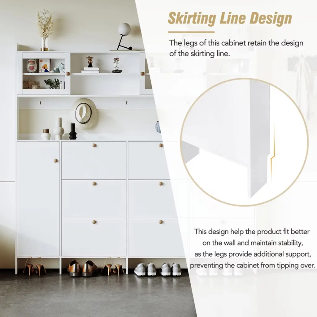Tiramisubest Multifunctional Tipping Bucket Shoe Cabinet With Storage Shelf & 6 Flip Drawers, Large Hall Tree With Doors, Cabinet For Hallway, White