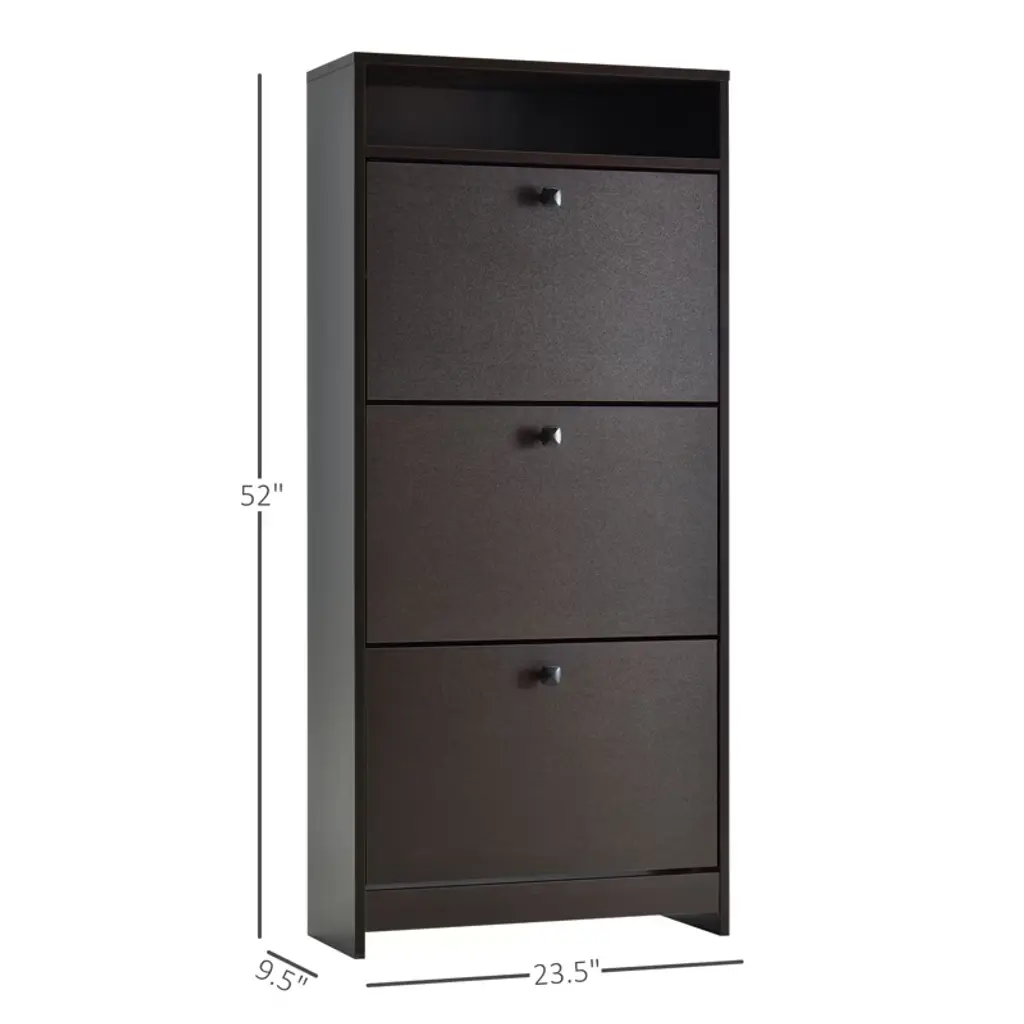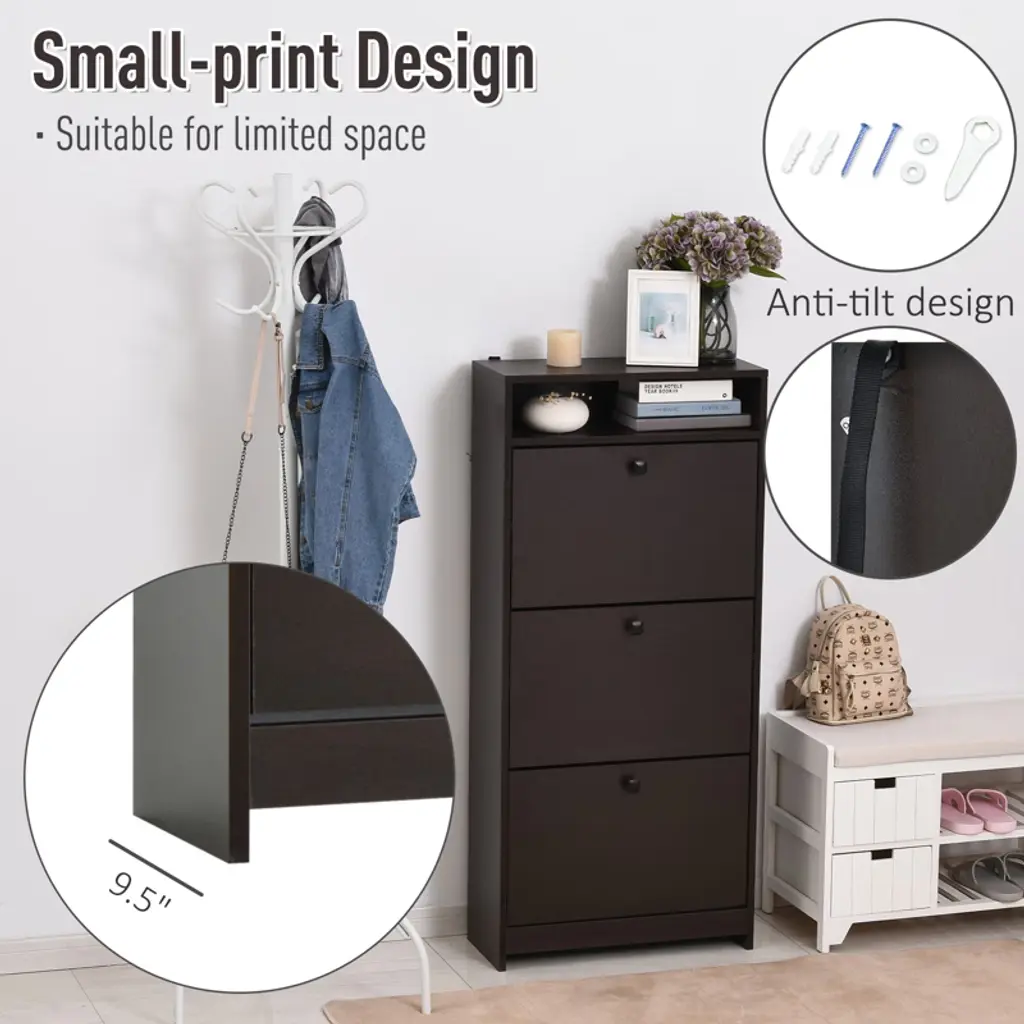 Tiramisubest Slim Shoe Cabinet With 3 Fold-out Drawers & Spacious Top, Trendy Entryway Storage Organizer, Espresso