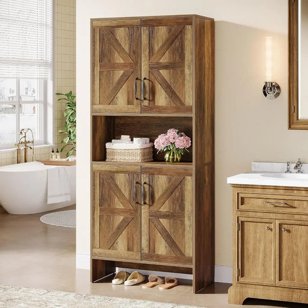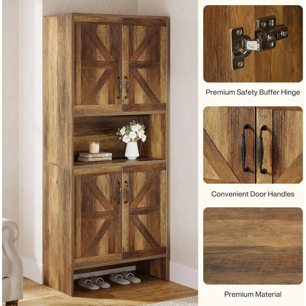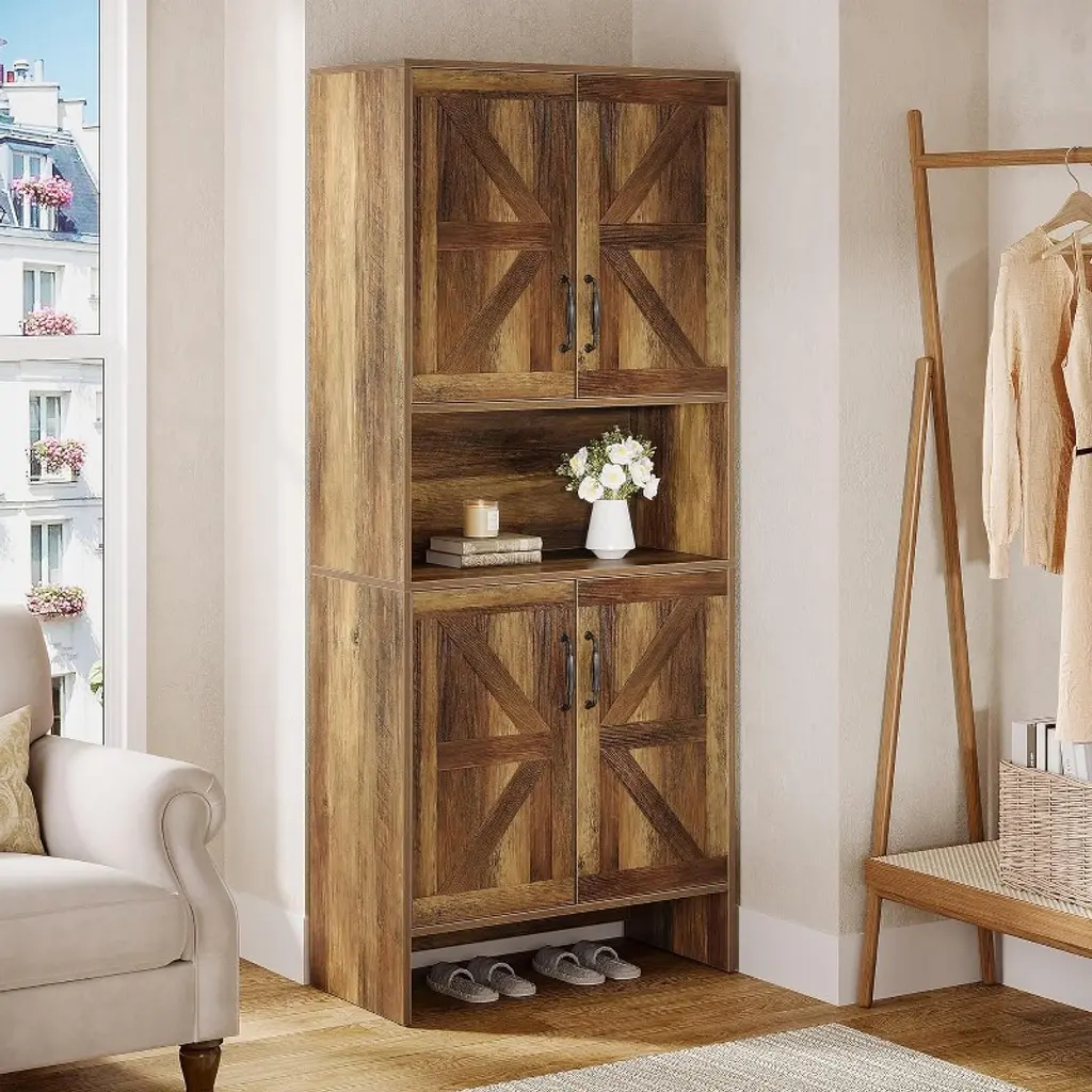 Keep your home tidy with this 67.52-inch farmhouse shoe cabinet, featuring seven adjustable shelves behind closed doors to store up to 28 pairs of shoes discreetly. The warm rustic brown finish and charming design make it a stylish addition to entryways or living rooms, while the spacious interior accommodates everything from sandals to boots. Perfect for families, it combines practical organization with cozy farmhouse appeal.