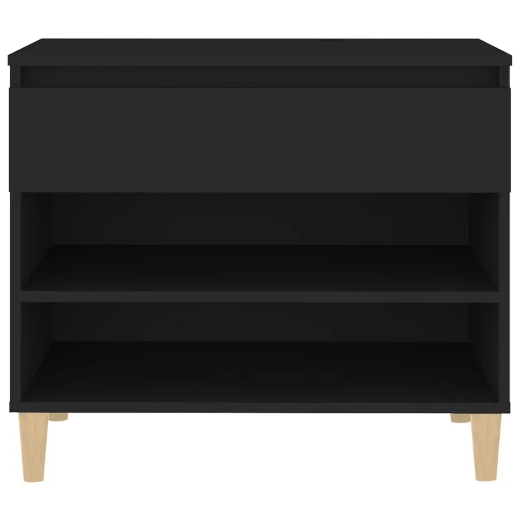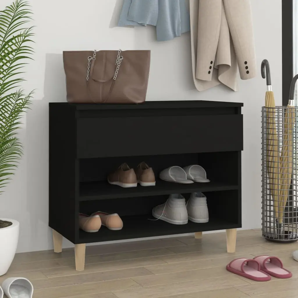 Vidaxl Shoe Cabinet Black Engineered Wood, Solid Eucalyptus Wood