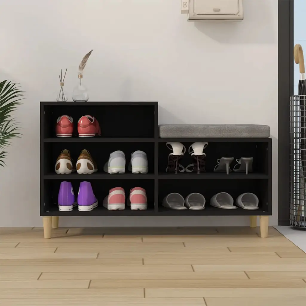 Vidaxl Shoe Cabinet Black Engineered Wood, Solid Eucalyptus Wood