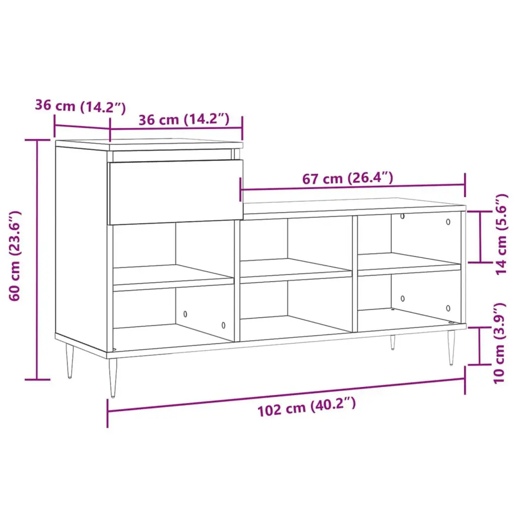 Keep your shoes away from dust and cluttering to create a tidy environment with this elegant shoe cabinet!Durable material: The engineered wood is of exceptional quality with smooth surface and also features strength, stability and resistance to moisture. Made of engineered wood, the shoe rack is easy to clean.Ample storage space: The shoe storage has 1 drawer and 6 compartments, providing ample storage space for keeping your shoes and other items well organised.Sturdy top: The top of the shoe cupboard is ideal for displaying decorative objects, photo frames, or potted plants.Flexible installation: The drawer can be installed on the left or right flexibly.Metal legs: The metal legs add a modern and calm style to your interior while ensuring stability.Warning:To prevent it being overturned, this product must be used with the provided wall attachment device.