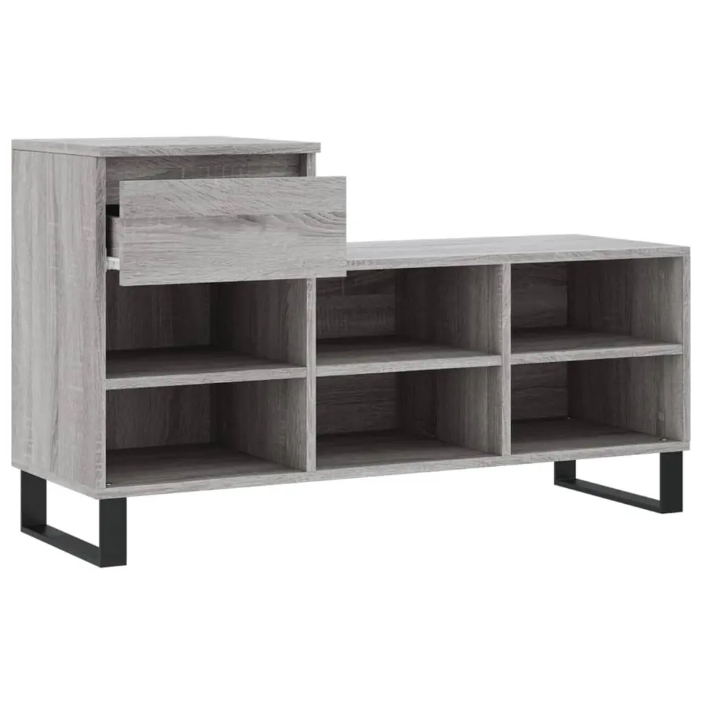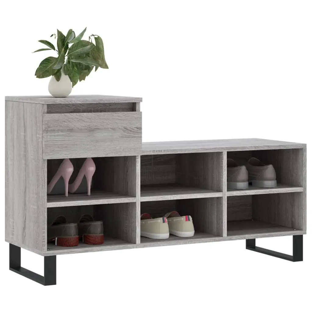 This shoe cabinet mixes practicality with style, adding a cool industrial vibe to your entryway or living room. Made from engineered wood and finished in grey Sonoma, it's designed to hold different types of footwear, helping keep your space looking neat and sharp. Ample Storage: With seven compartments, this cabinet has loads of room to store your shoes, keeping your faves organized and easy to find. Each space fits different types of footwear, from sandals to boots. No more messy floors, just a crisp and tidy home. Industrial Design: The cabinet's tough, factory-inspired look fits right in with modern or vintage styles, making it a versatile pick for any room. Its matte finish and clean lines give it a trendy vibe, while the raw materials add warmth to your home. Not just a pretty face, it's built to last too. Quality Craftsmanship: Made from high-quality engineered wood and metal, this cabinet will stand up to daily use without losing its charm. The materials are made to last, so you'll be saving time and money by avoiding frequent replacements. Convenient Features: The cabinet's got a drawer for extra storage, perfect for all your bits and pieces like shoe polish and laces. The doors make it easy to access your shoes while keeping them out of sight, all while maintaining a tidy look. It’s not just storage; it’s a stylish piece for your home. Easy Assembly: Comes with clear instructions and all the tools you need to make putting it together a breeze. You can do it all by yourself, and when it's done, it’ll stand strong and safe, keeping your shoes protected and easy to get to for ages.