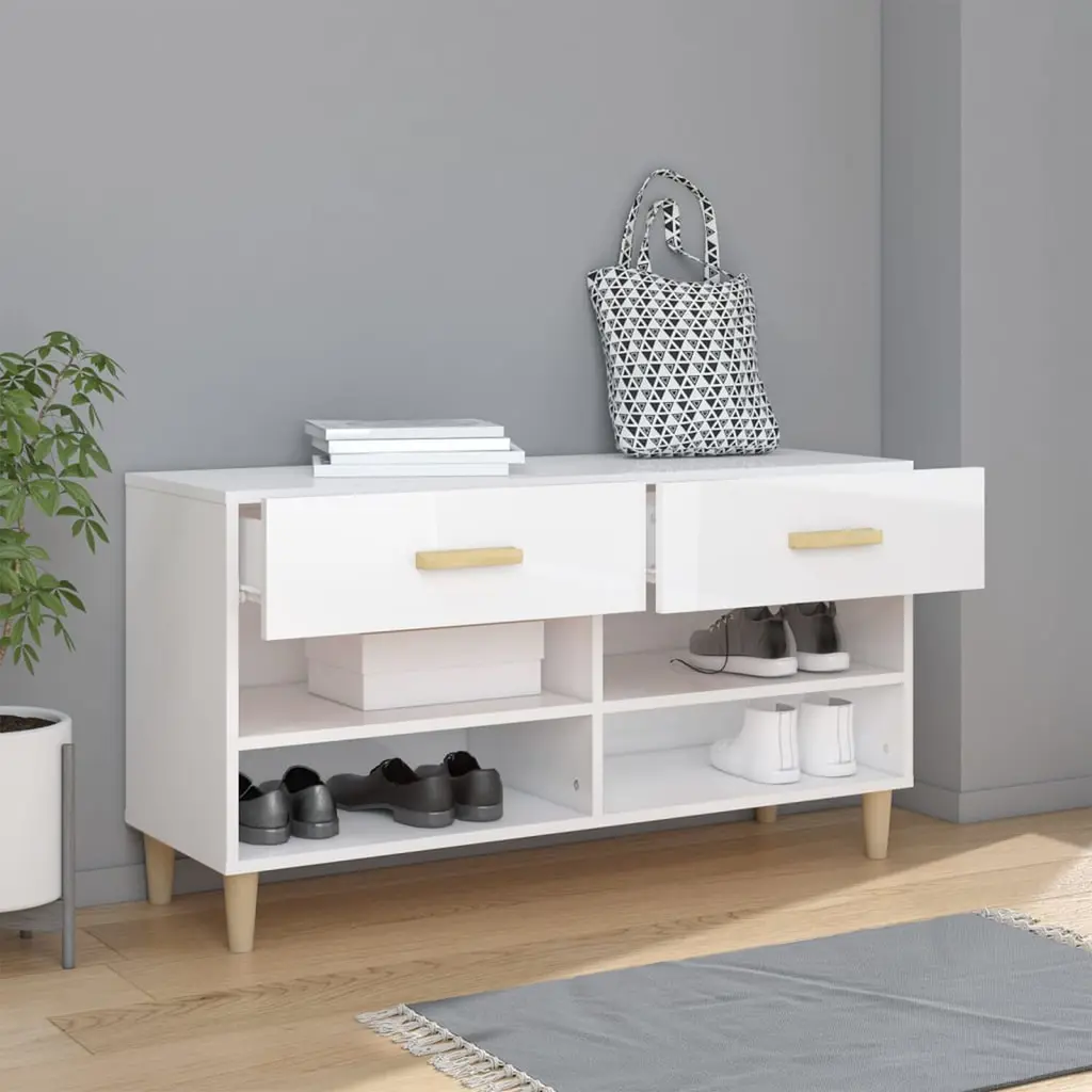 Vidaxl Shoe Cabinet High Gloss White Engineered Wood