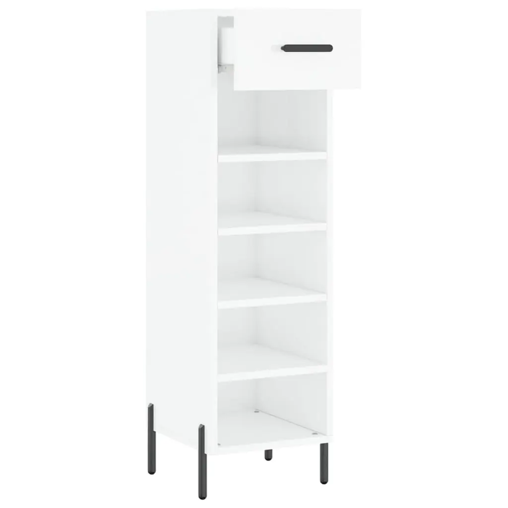 Vidaxl Shoe Cabinet High Gloss White Engineered Wood, Iron, Zinc Alloy
