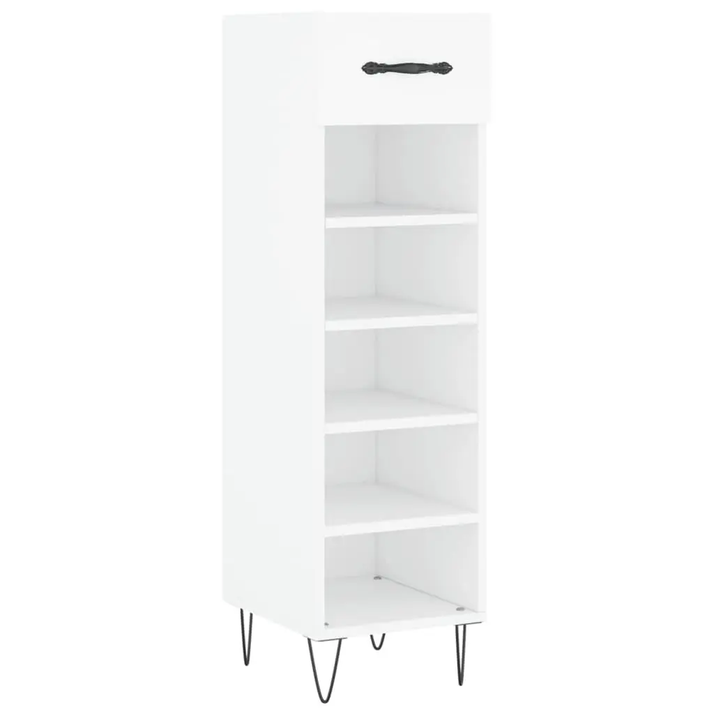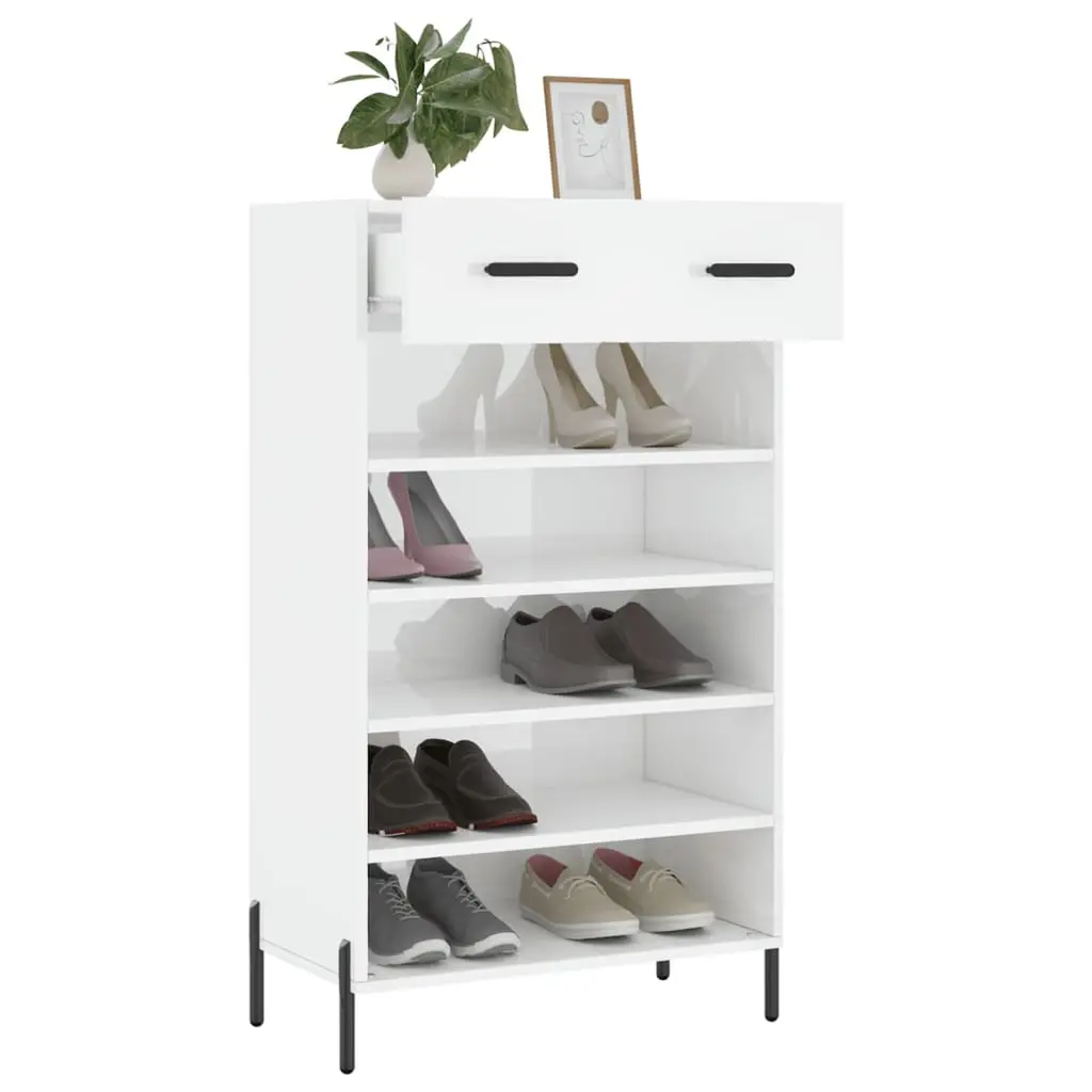 Vidaxl Shoe Cabinet High Gloss White Engineered Wood, Iron, Zinc Alloy