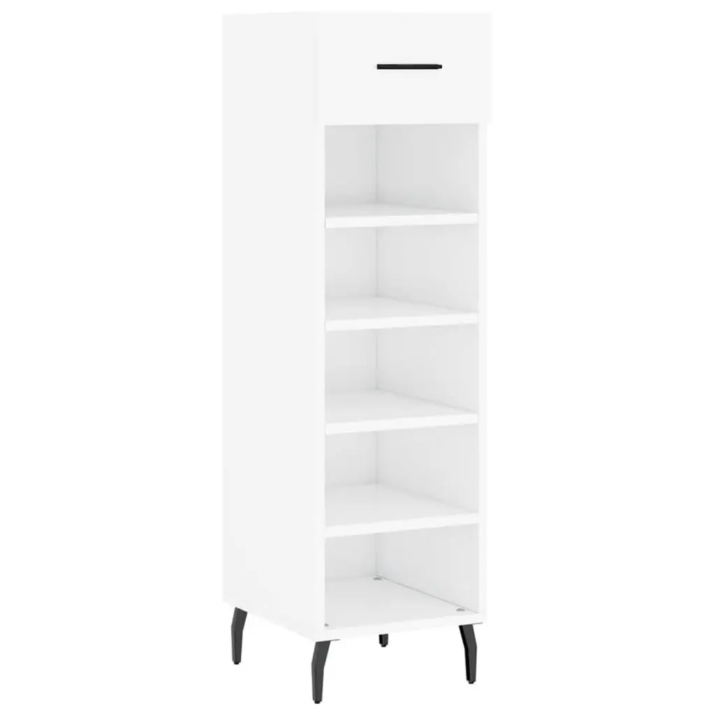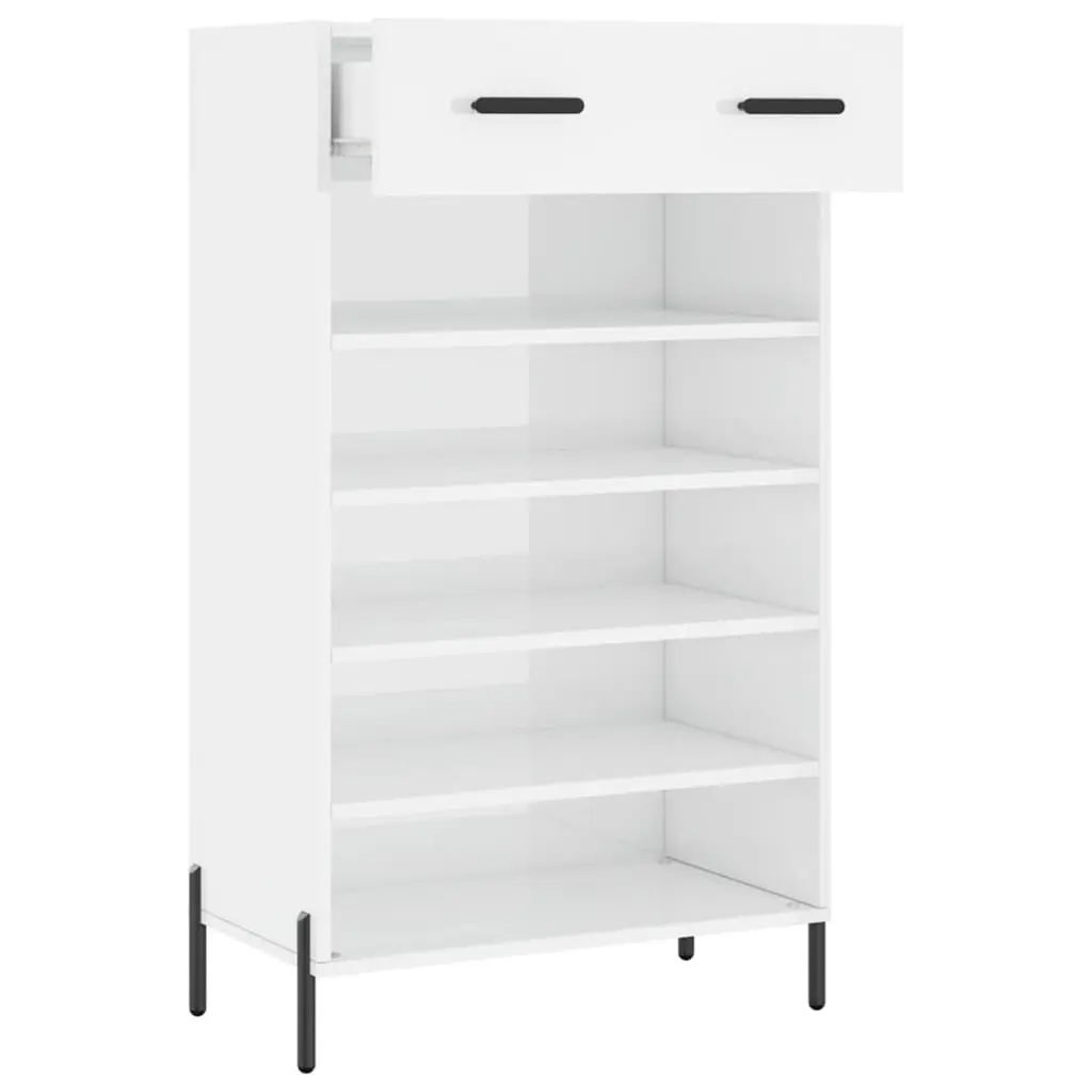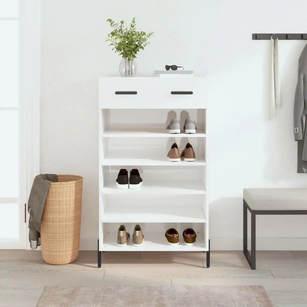 This shoe cabinet blends practicality and industrial style, making it a great choice for any hallway or living room. Made from tough engineered wood and featuring a posh high gloss white finish, it not only offers loads of space for your shoes but also enhances the overall look of your space, giving it a modern vibe that fits in with all sorts of decor. Ample Storage: The shoe cabinet is designed with five open compartments, making it super easy to keep your footwear organized. Accessing your shoes is a breeze, and it’ll keep your entryway looking lovely and tidy.Stylish Design: The high gloss white finish gives it a modern and sleek vibe, making it a real showstopper in your entryway. It fits beautifully with all sorts of decor, whether traditional or modern.Durable Construction: Built from engineered wood, this shoe cabinet is made to last. The solid metal frame gives it added durability, ensuring it holds the weight without skimping on style.Wall-Mounted Stability: Comes with a wall attachment, keeping it secure against the wall to prevent any tipping. This not only improves safety but also frees up floor space in smaller homes.Multiple Uses: Not just for shoes, this handy cabinet can store bags and personal items too, helping you keep your entryway or hallway neat and tidy.