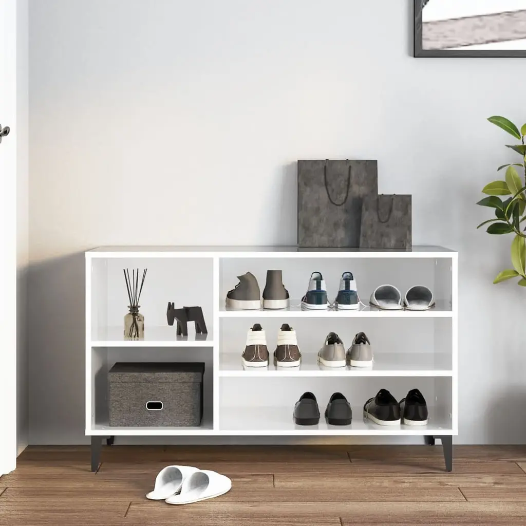 Vidaxl Shoe Cabinet High Gloss White Engineered Wood Medium Shoe Cabinet