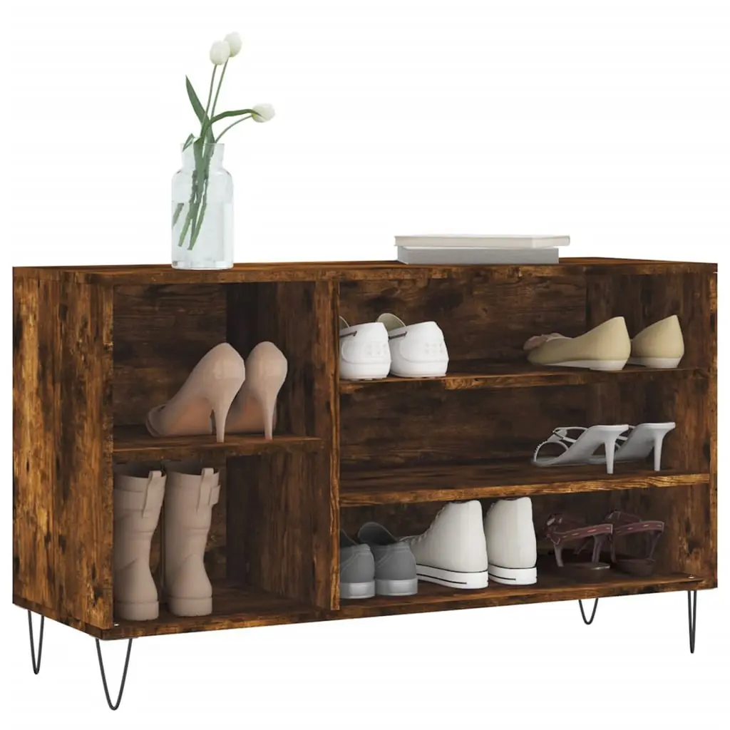 Vidaxl Shoe Cabinet Smoked Oak Engineered Wood And Metal Medium