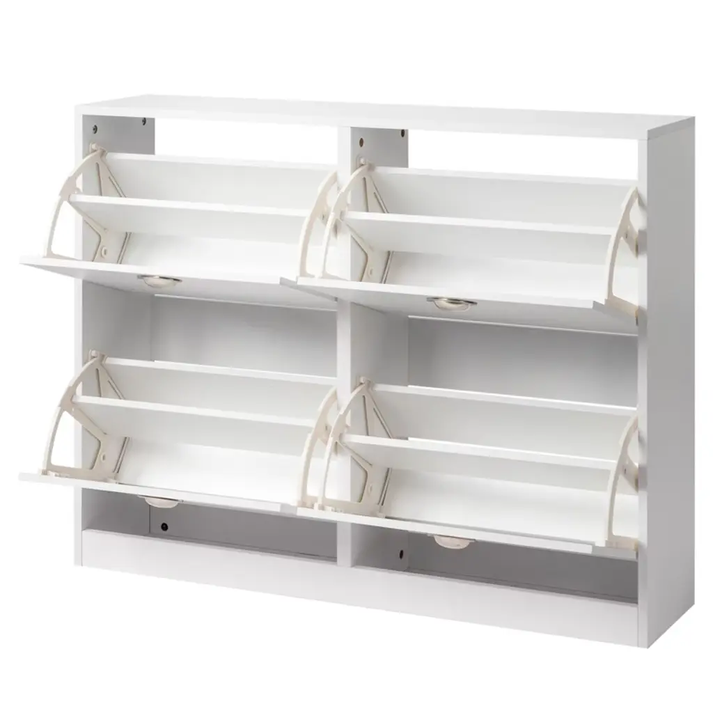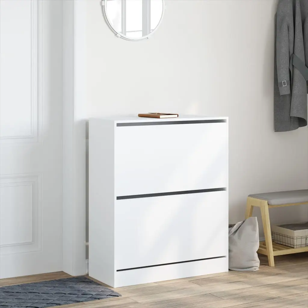 This shoe cabinet shows off modern simplicity and practicality, made just for your hallway or mudroom. With its chic white finish and compact size, it’s not only a handy space for your shoes but also adds a bit of elegance to your decor, perfect for any style-conscious homeowner. Ample Storage: This shoe cabinet has loads of compartments to keep your footwear collection organized. Each section is designed to fit various styles, from sneakers to heels, so you can easily find the right pair.Contemporary Design: With its modern look of clean lines and a smooth finish, this cabinet boosts your space's visual appeal. The all-white finish fits seamlessly into any decor theme for a neat look.Dust-Free Environment: The closed design keeps your shoes safe from dust and dirt, ensuring they look good for longer.Versatile Usage: This cabinet is perfect for different settings and works well as a console in entryways. Its compact size fits where style and storage are needed.Durable Construction: Made from engineered wood, this cabinet is built to hold up over time. It’s sturdy enough for daily use while keeping its charming look.