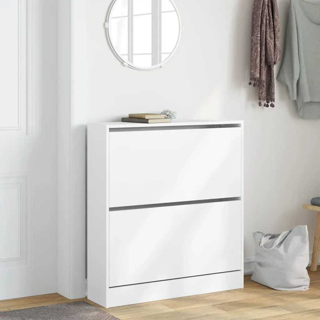 This shoe cabinet is a great space-saver, perfect for decluttering your entryways and living spaces. It mixes practicality with a modern look. Made from engineered wood, it comes in a lovely white finish that fits various decor styles, keeping your shoes organized while enhancing your space. Ample Storage: With two flip drawers designed for shoe storage, this cabinet's got plenty of space for up to 40 shoes. Perfect for busy households to keep things tidy and shoes easy to find.Modern Design: The cabinet’s sleek style focuses on practicality and chic aesthetics, making it a fantastic addition to any hallway or mudroom. Its clean lines and smooth finish are easy to keep tidy too.Durable Materials: Made from high-quality engineered wood, this shoe cabinet is built to last. The matte finish provides an elegant touch and guards against scratches and wear for daily life.Space-Saving Wall-Mounted Type: Being wall-mounted, this cabinet saves valuable floor space and gives a streamlined look. It’s great for smaller homes, making the most of vertical storage while keeping your space feeling open.Versatile Use: Ideal in various spots, from hallways to mudrooms, this cabinet suits any household wanting to keep shoes and other belongings in order.