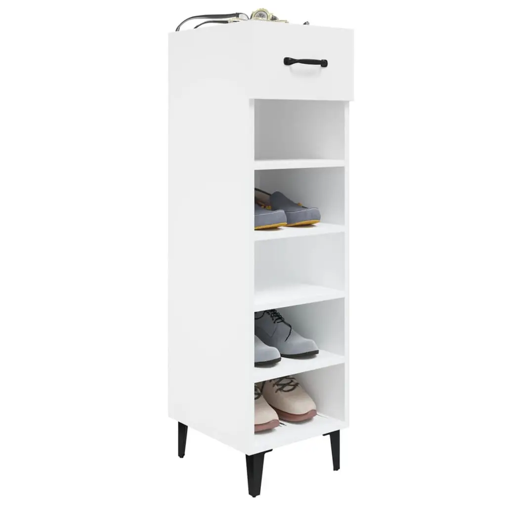 This shoe cabinet is perfect for anyone needing a tidy setup for their footwear. Made from quality engineered wood, it comes in a fresh white finish that brightens up your entryway or living room, adding an industrial touch. Even though it’s compact, it holds plenty of shoes, making it a must-have for every home. Ample Storage: This smart cabinet has loads of space for keeping your shoes organized. With several compartments, you can say goodbye to clutter in your hallways.Space-Saving Design: Its tall slim shape fits nicely in entryways or living rooms, perfect for making the most of limited space.Durable Material: Made from engineered wood, it’s moisture-resistant and stands up to daily use. The quality finish means it’s built to last.Stylish Look: With a modern industrial design, this cabinet suits various decor styles. The matte white finish and chrome details create a sleek look.Easy Assembly: Comes with all the tools and instructions for a simple setup with two people, so you'll be enjoying your new storage in no time.