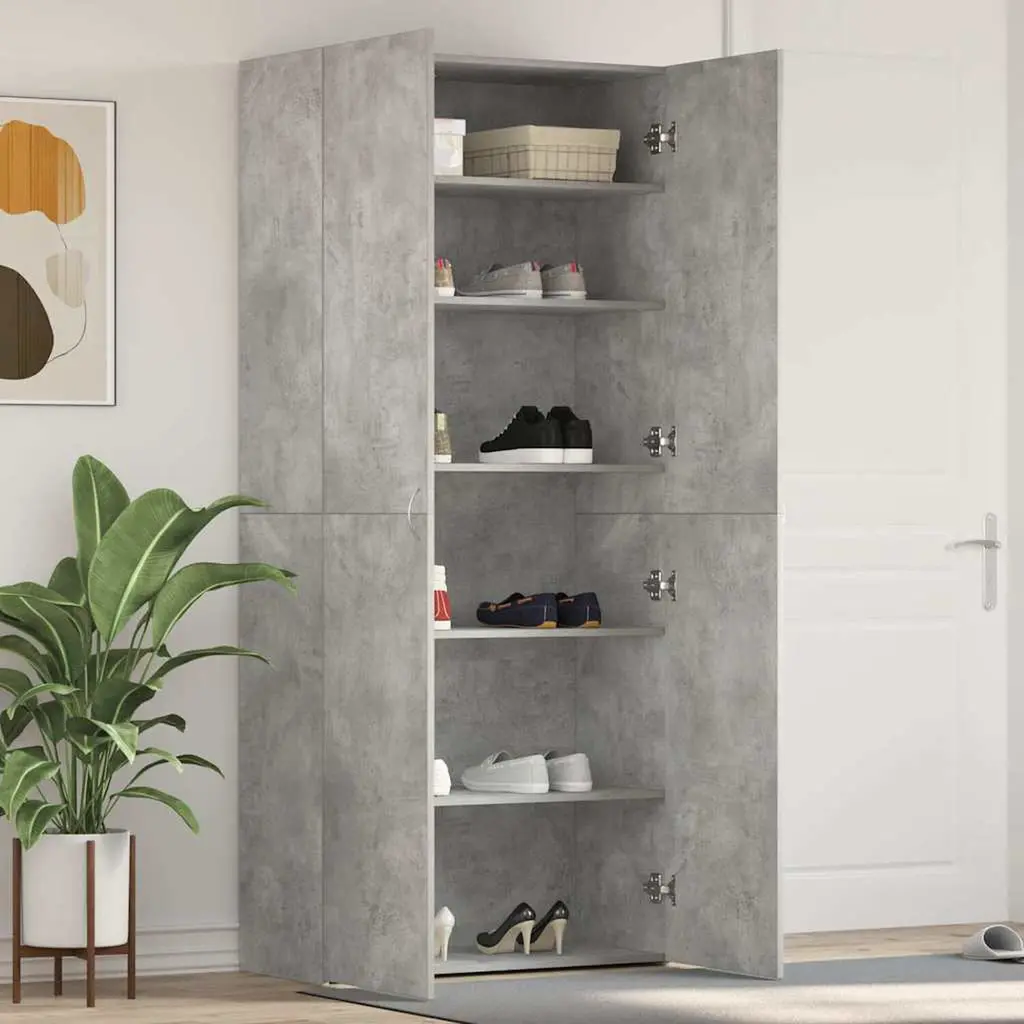 Vidaxl Shoe Cabinet With Shelf Gray 80 X 35.5 X 180 Cm Engineered Wood