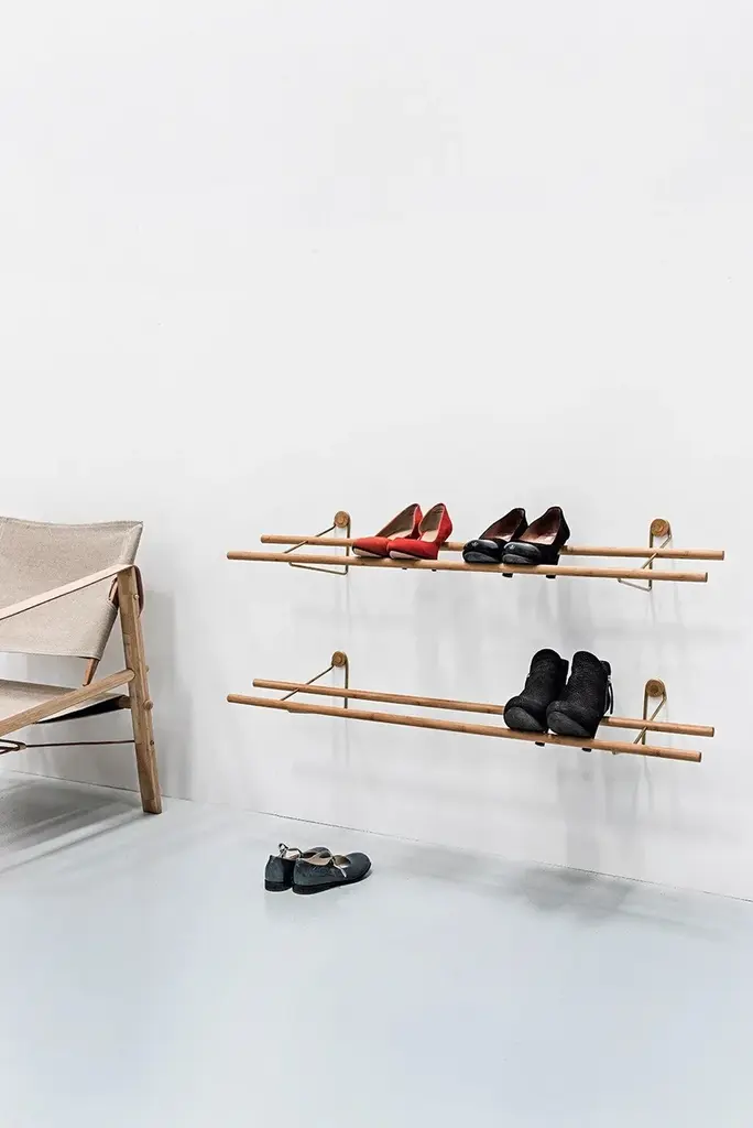 Being small and simple yet elegant, the Shoe Rack fits into any home. The Shoe Rack is an adjustable shoe organizer made in solid and sustainable materials. To accommodate different types of shoes, the rack is very user-friendly and can easily be adjusted and provide storage for all sizes. The brackets are available in brass or black steel, which can easily be recycled when the product has reached end of life. The Shoe Rack furniture parts are made from certified moso bamboo, which one of the most sustainable natural resources in the world. At We Do Wood we only work with certified suppliers and therefore the materials come from certified plantations. This is our guarantee that our bamboo is grown without any chemicals, pesticides, herbicides or fertilizers. Furthermore the bamboo processing and furniture manufacturing is done without the use of harmful chemicals and all adhesives used during processing and production has the lowest formaldehyde emissions in the industry.