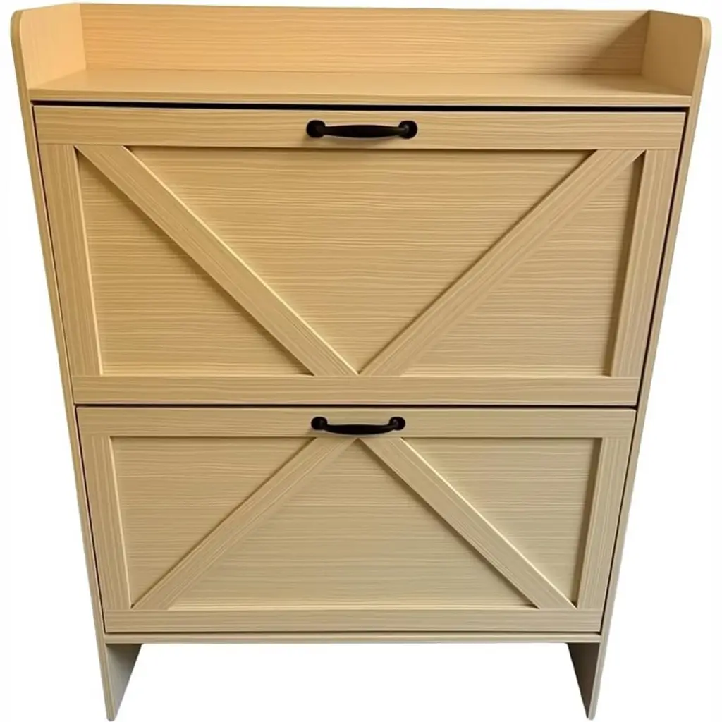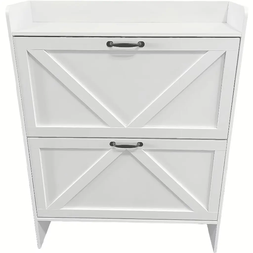 "Shoe Cabinet" & "Shoe Storage" ¨C TruAIR White Slim Shoe Organizer (2 Flip Drawers, 5 Storage Levels, 41.12 lbs)Rustic Farmhouse DesignWhite finish with sleek metal handleSlim profile fits narrow entrywaysLarge 5-Level Capacity2 flip drawers with dual-tier adjustable panelsExtra bottom space for various shoe sizesMultifunctional StorageTop surface with raised edges for essentialsHolds shoes + accessories (keys/wallets)Sturdy & Safe ConstructionMDF frame with metal pedestal legsIncludes 2 anti-tip devices (41.12 lbs)Easy Assembly & CareLabeled components + included toolsWipe-clean surface maintenance