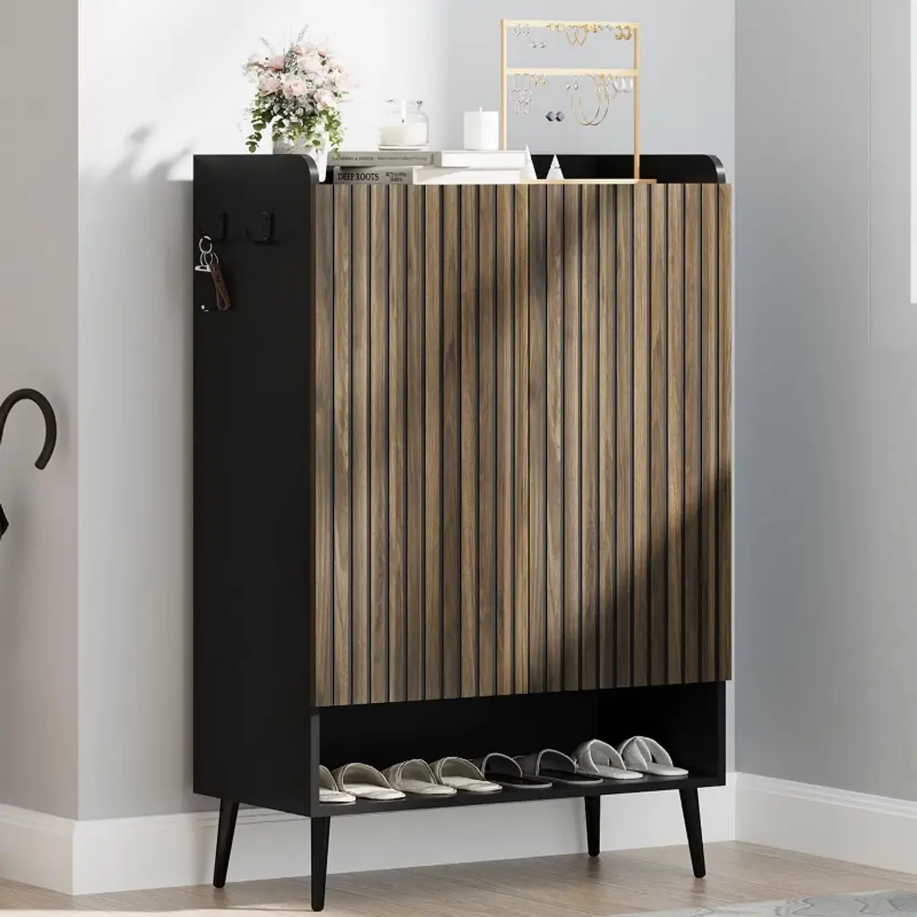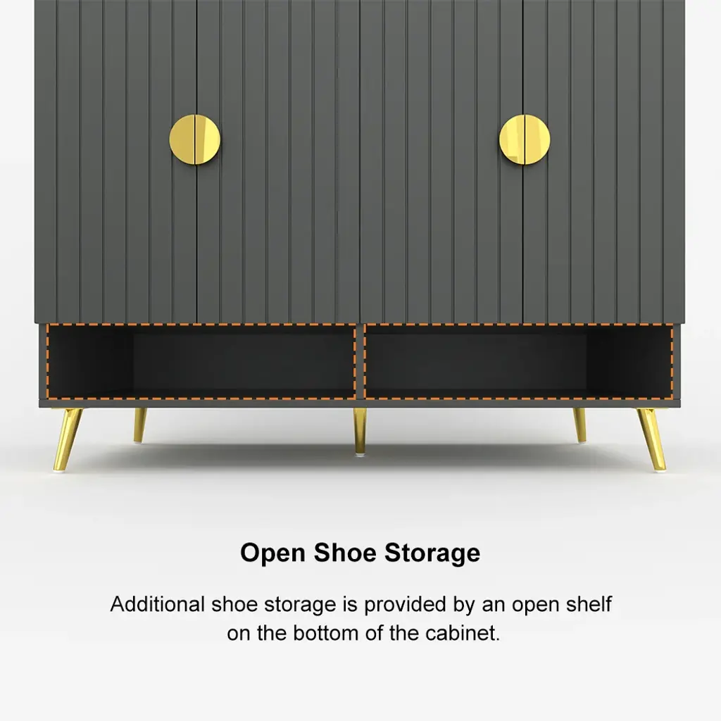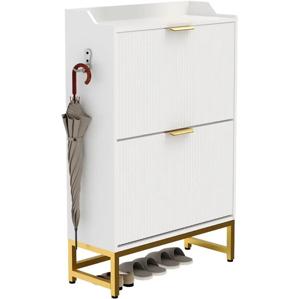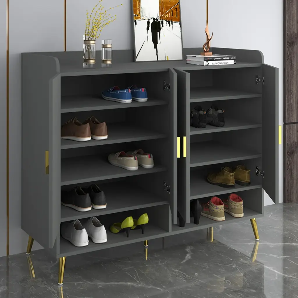 Meet the elegant and functional shoe cabinet that's revolutionizing home storage - our premium Wood and Gold Shoe Cabinet. With its classic modern aesthetic and high-end construction, it's the perfect solution for shoe lovers seeking a stylish furniture piece that provides ample space to store their shoes.