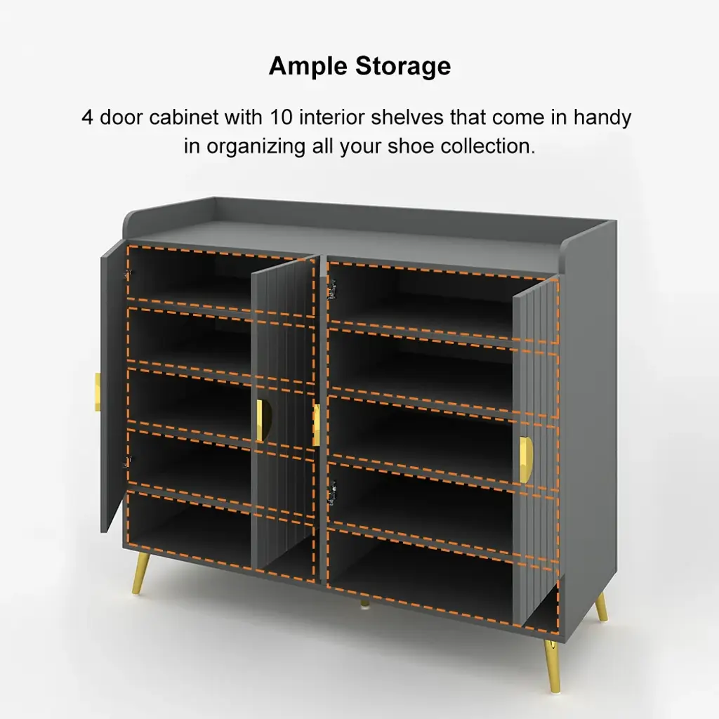 Yellar Nordic Gray Shoe Cabinet 10 Shelves Entryway Shoe Cabinet