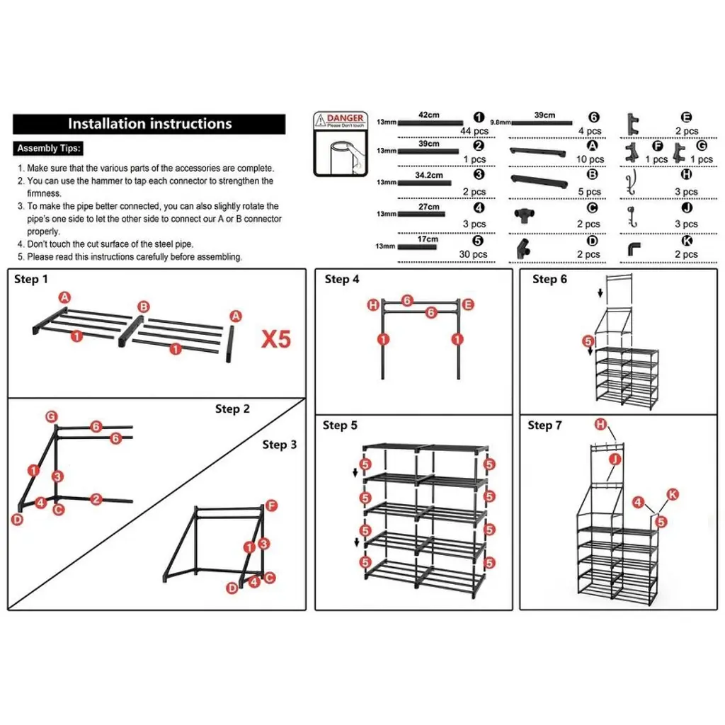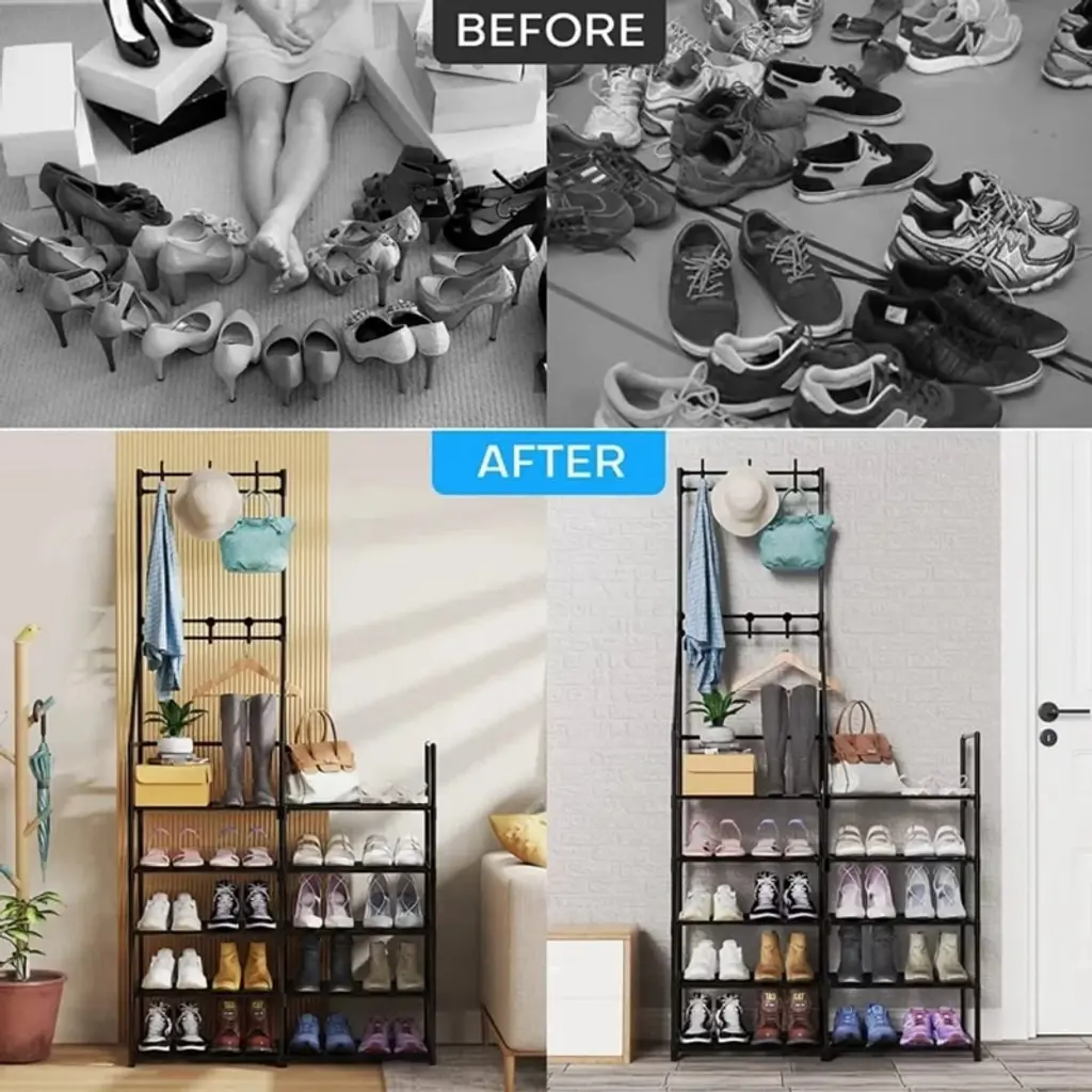 Introducing our 5 Tier Coat & Shoe Rack, designed to bring organization and style to your home, office, or dorm room. This versatile storage solution combines functionality and durability, making it the perfect addition to any space.