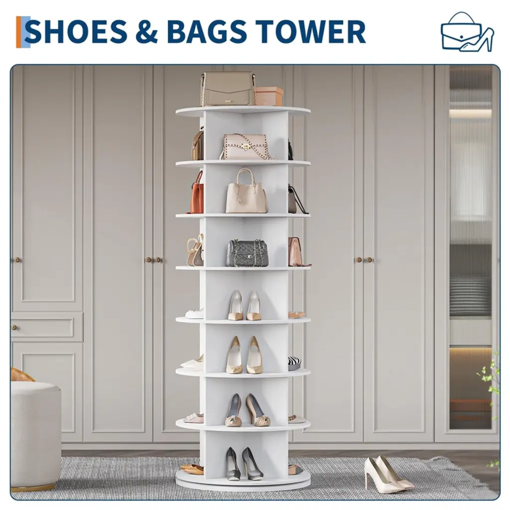 7 Tier Rotating Shoe Rack Tower, 360° Revolving Free Standing Spinning Shoe Organizer, Vertical Spinning Shoes Display